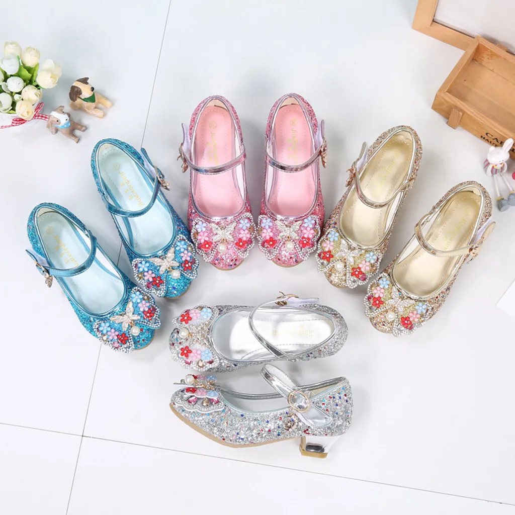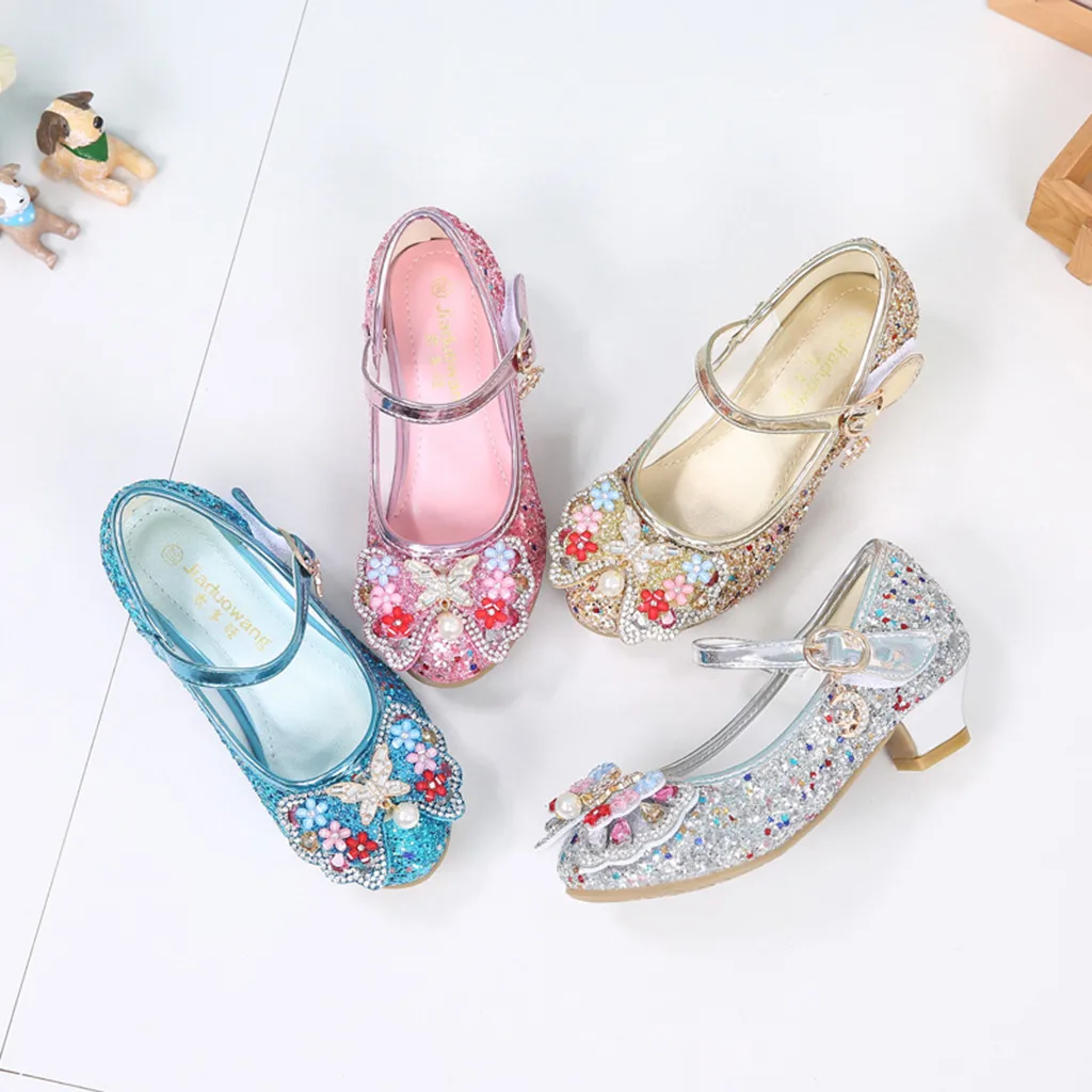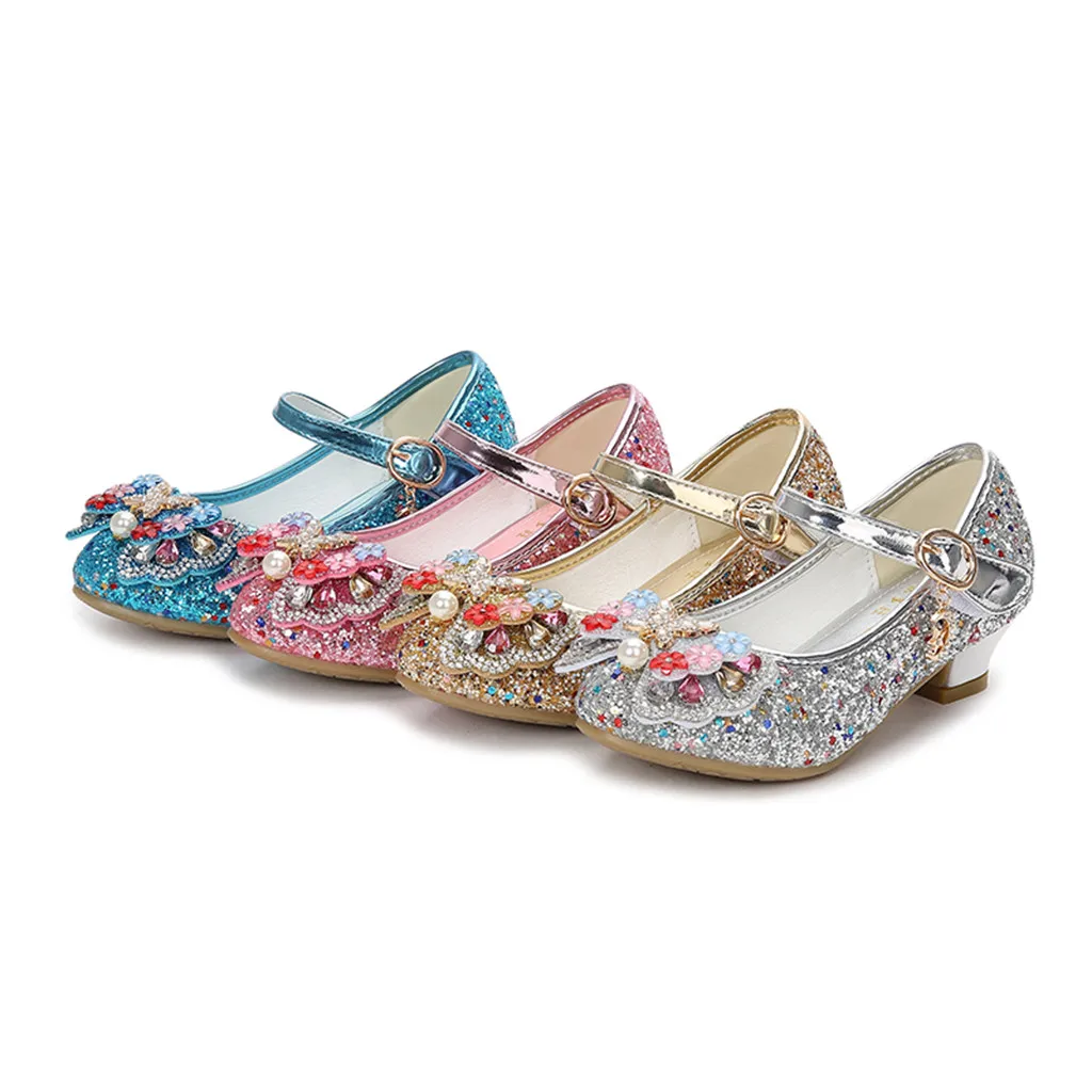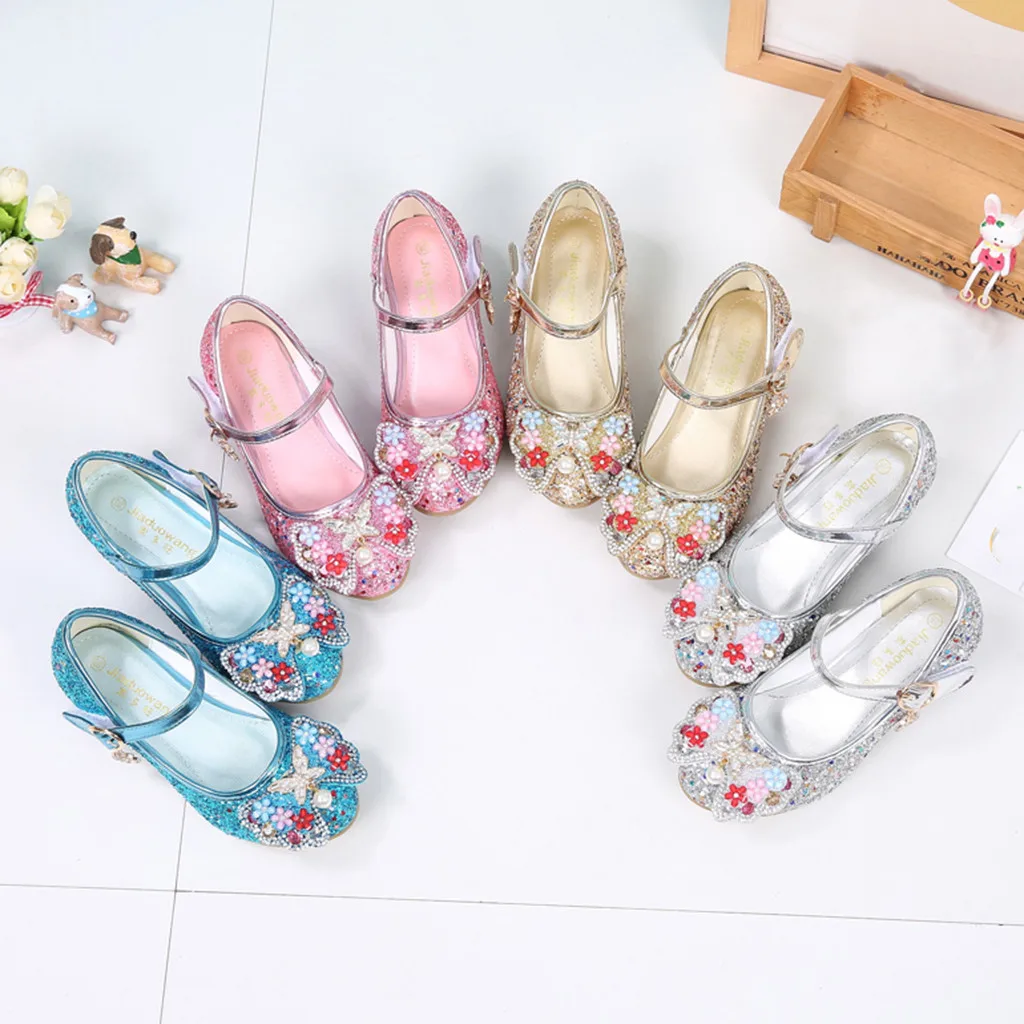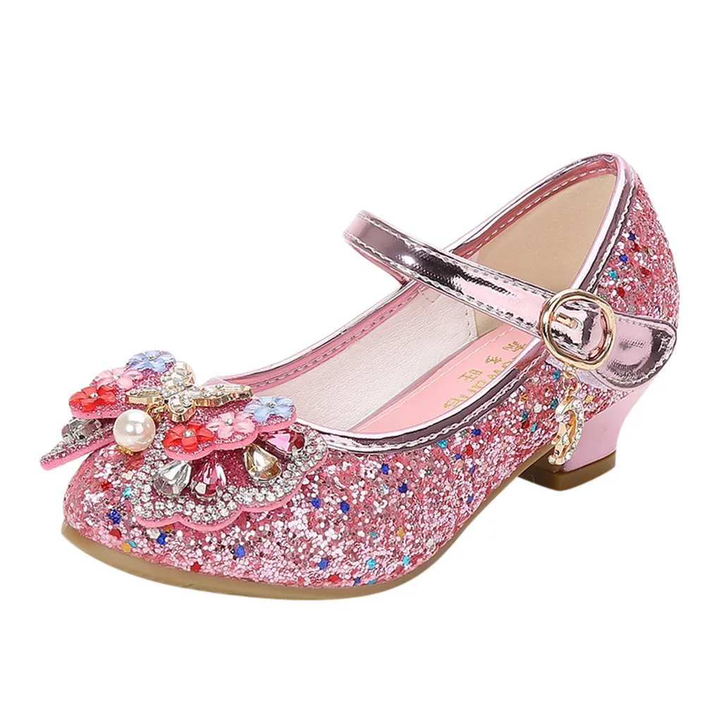 Вечерние туфли принцессы с жемчугом и бантом-бабочкой для маленьких девочек