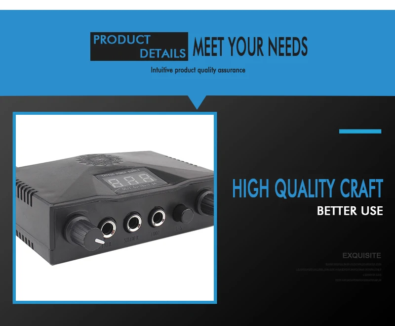1. 100% новый и высокое качество. 2. Гладкий внешний вид и техническая ручная работа. 3. Полностью регулируемый выход с двумя высокоточными циферблатами мощности. 4. Стабильная производительность, долговечность для длительной работы. 5. ЖК-дисплей делает вас более удобным в работе с татуировкой. 6. Лучшее рассеивание тепла и понижение температуры.