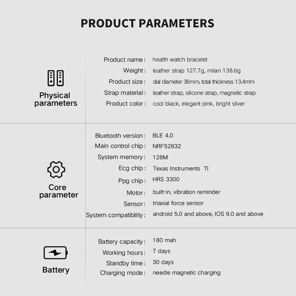 2. Новое поколение спортивных наручных часов для здоровья, как спортивный браслет, он не только имеет обычные возможности сбора данных о спорте, но и предоставляет рекомендации для ежедневных занятий спортом. Как часы для здоровья, это не только основная функция, такая как измерение сердечного ритма, но также имеет функцию измерения артериального давления. Поэтому это не только спортивный браслет, но и здоровый браслет.