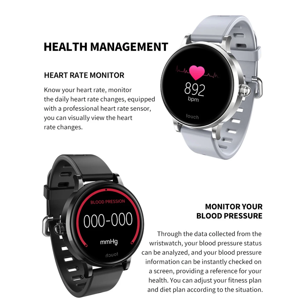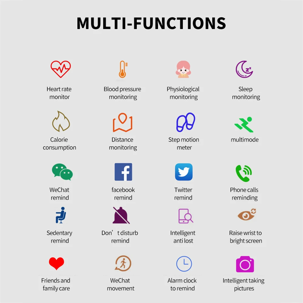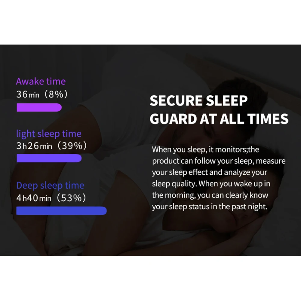 2. Функция: обнаружение сердечного ритма, обнаружение артериального давления (мониторинг сердечного ритма), отображение времени/часов, подсчет шагов, калории, расстояние, время сна, фото, включение/выключение дисплея (4 циферблата)