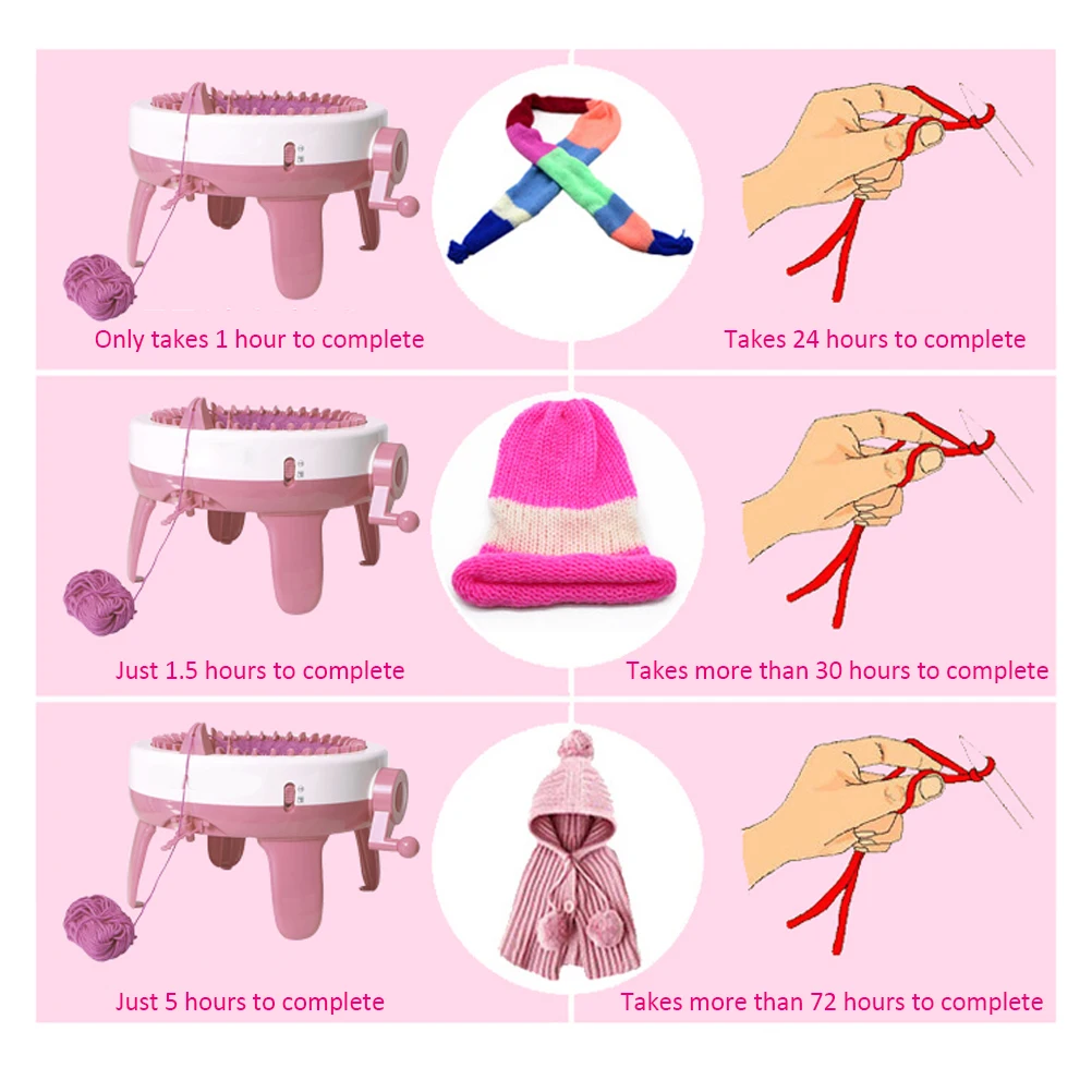 Вязальная машина 40 позиций для вязания, ткацкий станок для девочек, шапка Scraf, детские игрушки на день рождения, вязаные швейные инструменты, розовый