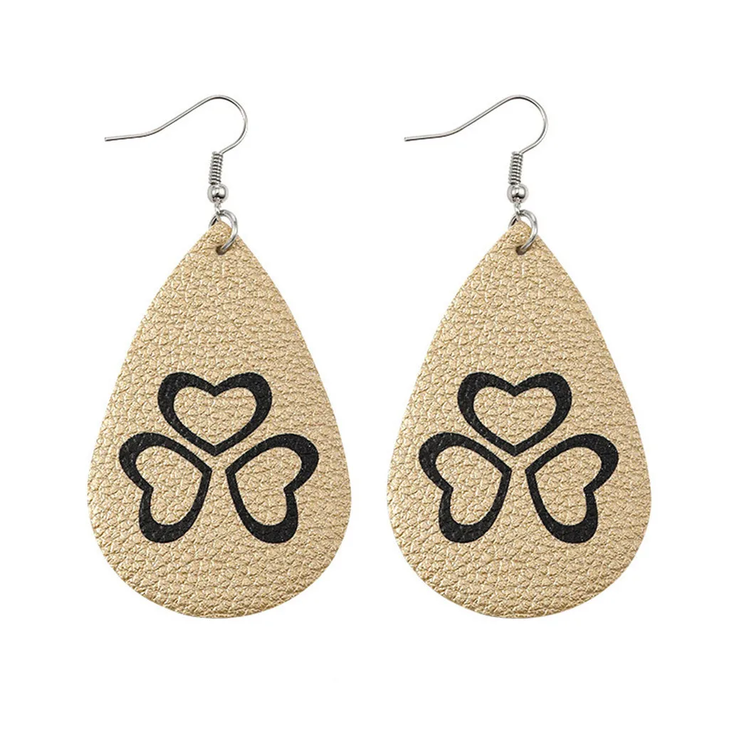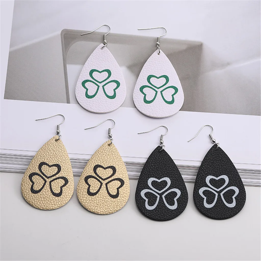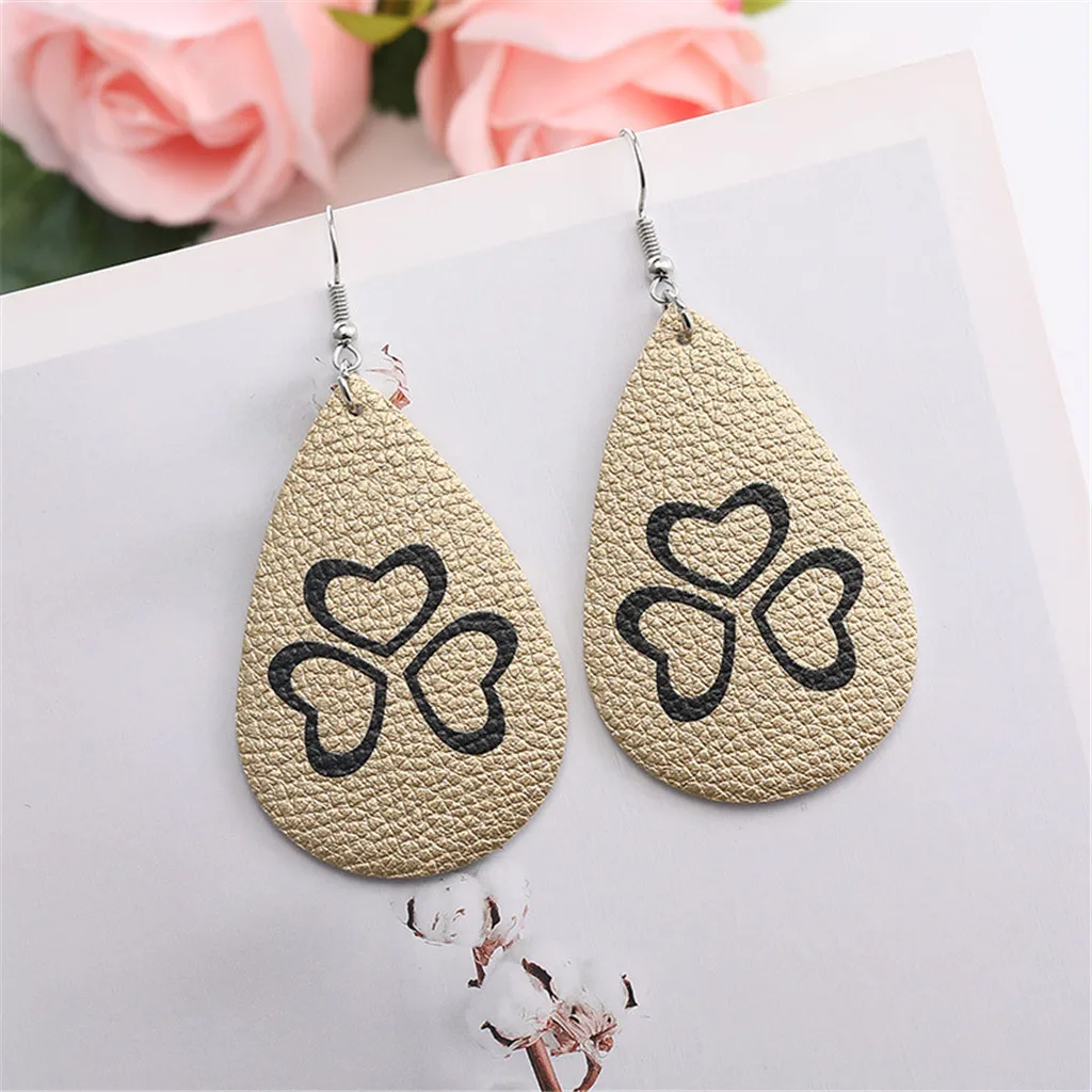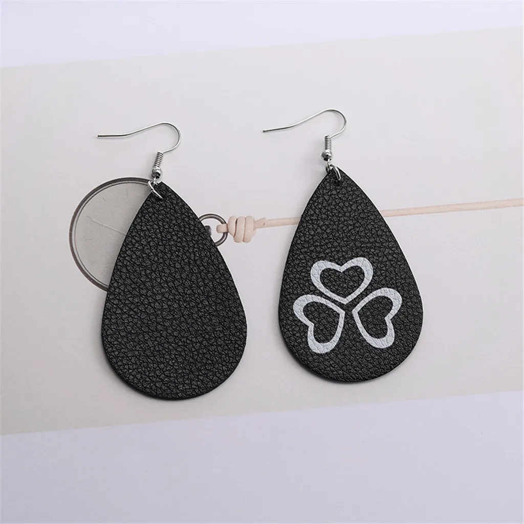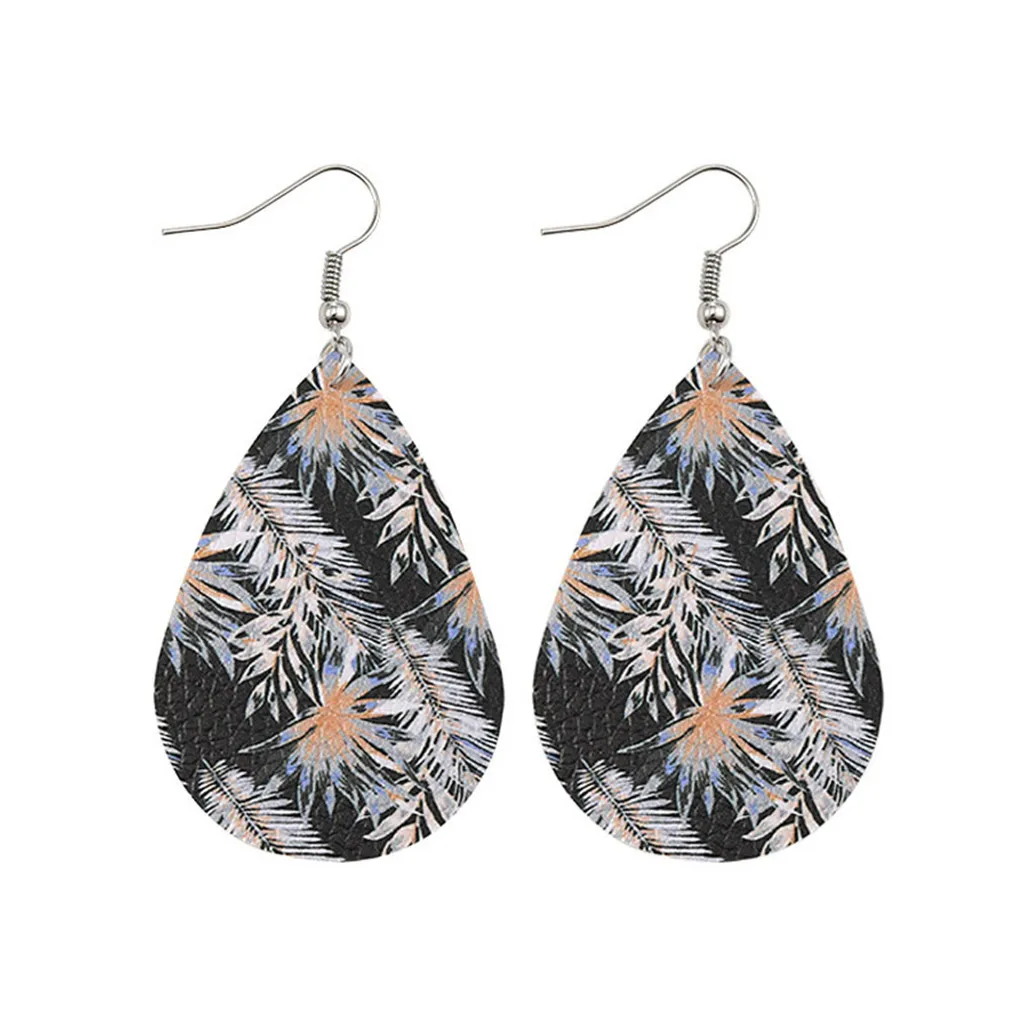 Модные Этнические серьги, двухсторонние кожаные серьги в форме капли с принтом