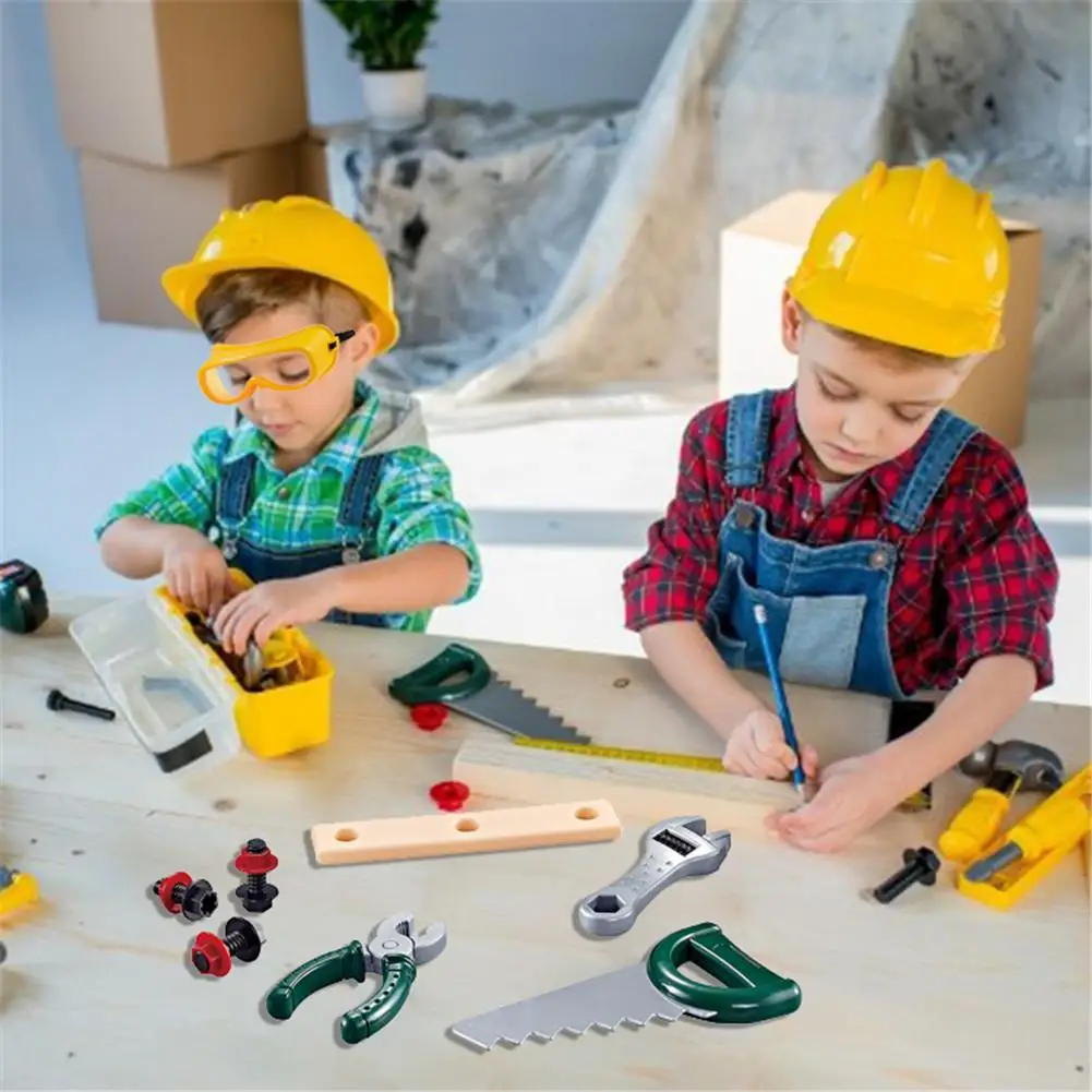 1. Набор детских игрушек: наш детский набор игрушек включает в себя все, что ему нужно для развития присущих ему механиков, поставщиков или рабочих функций. В том числе защитные очки, настоящая рулетка, игровой молоток, гвозди, гайки, болты, трещотки, плоскогубцы и отвертки.Пластиковая деревянная доска x 2