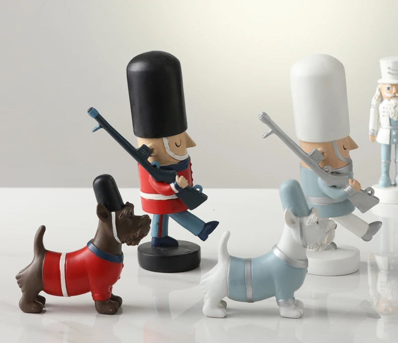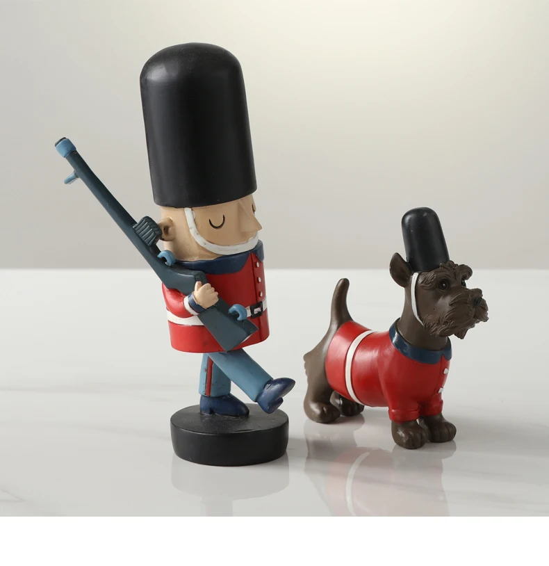 Креативный Щелкунчик, кукла, английский охранник и собака, смолы, миниатюрные фигурки, ручная работа, украшение для вечеринки, домашний подарок, Мини фигурки