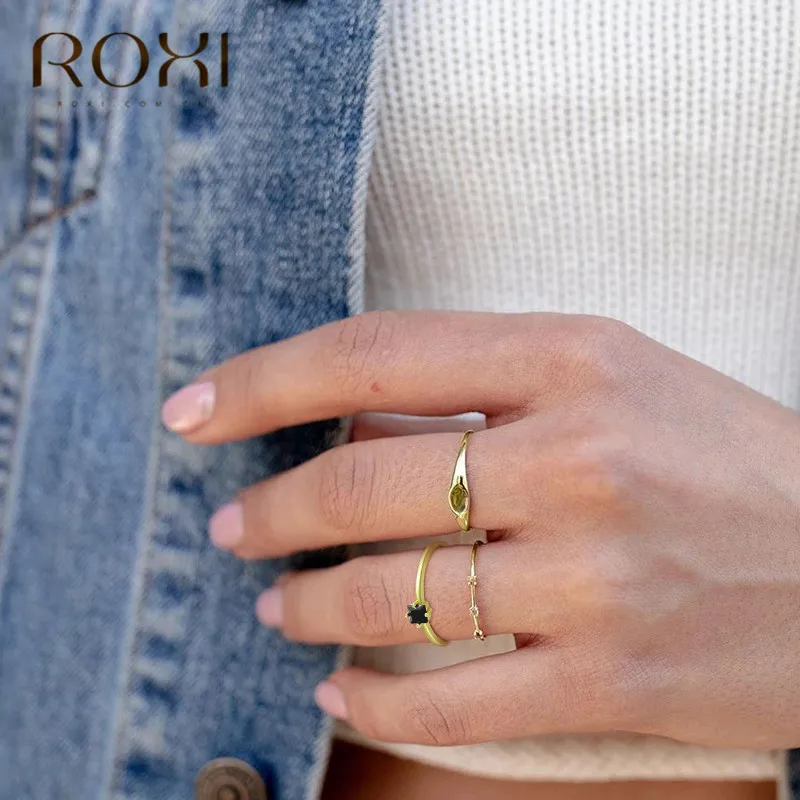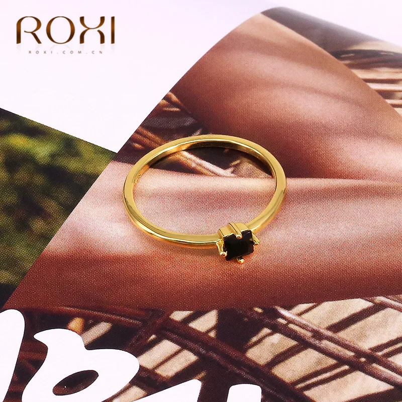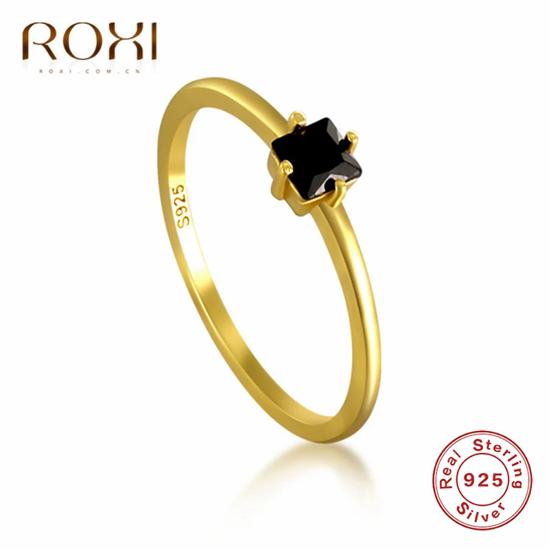 ROXI, 925 пробы, серебряное, квадратное, черное, кристалл, обручальные кольца для женщин, минималистичные тонкие, круглый палец, кольцо, ювелирное изделие, S925