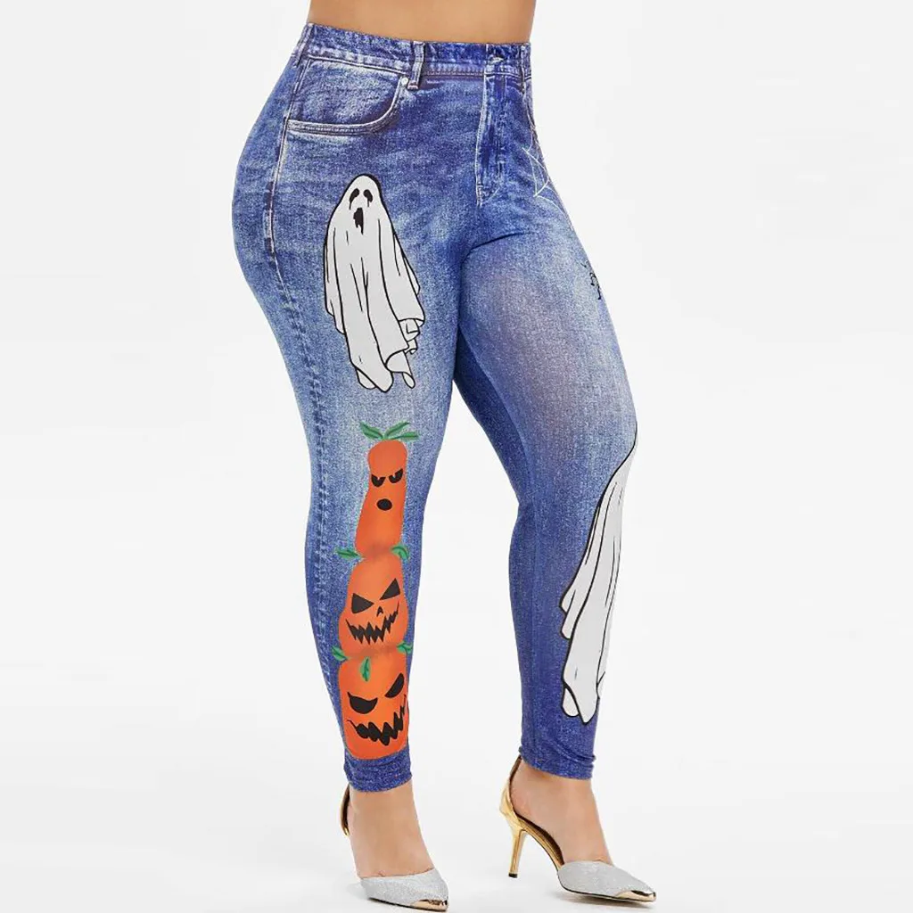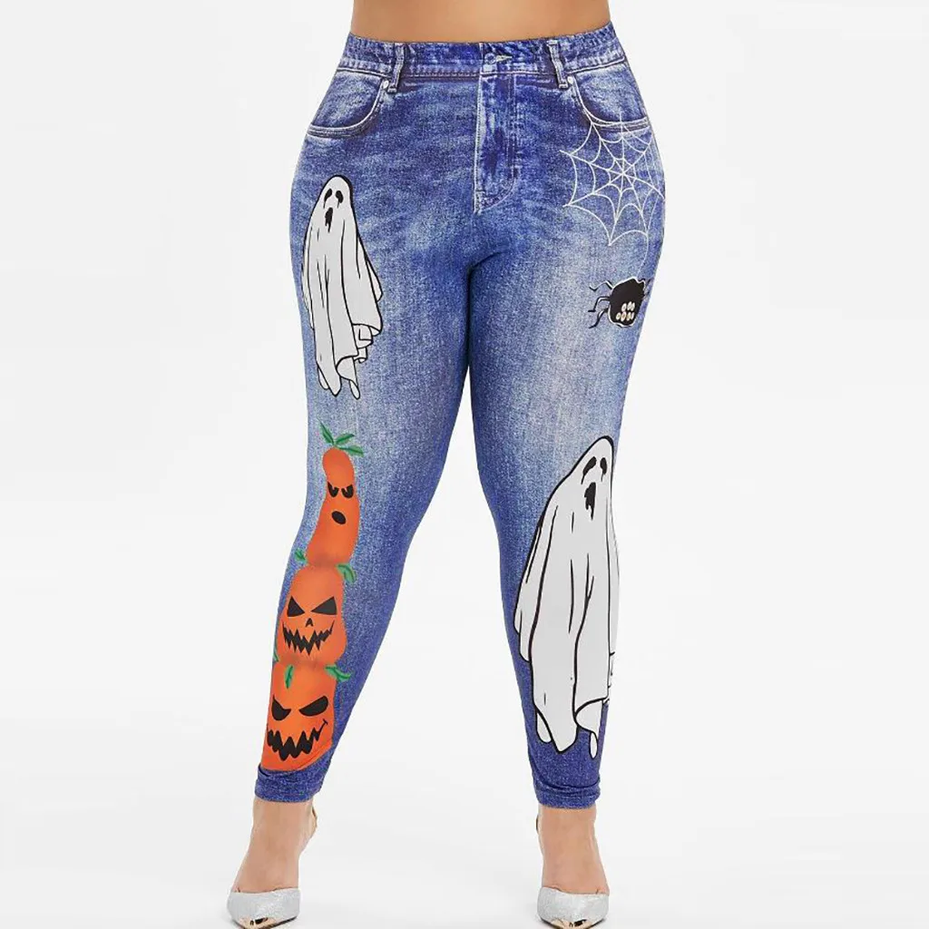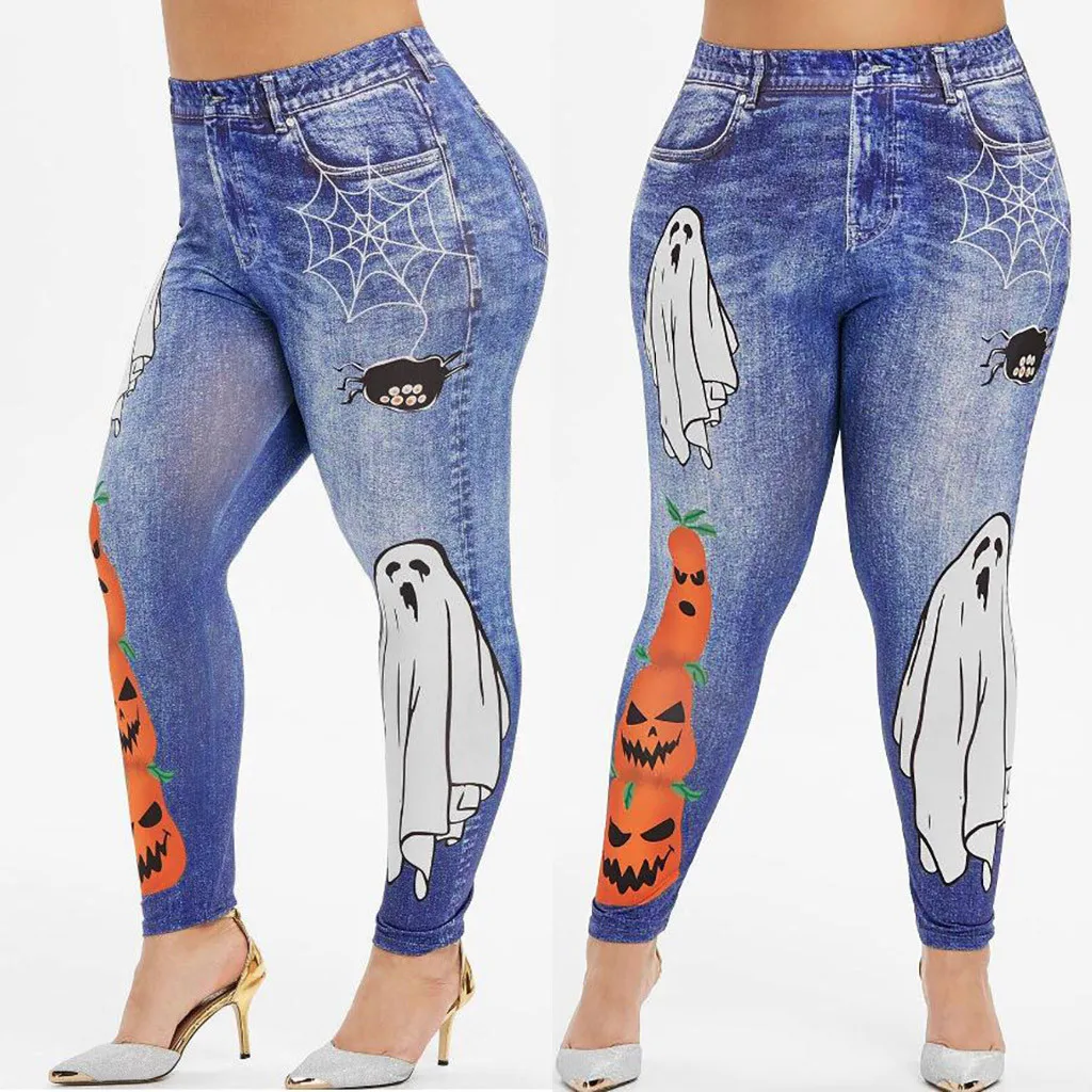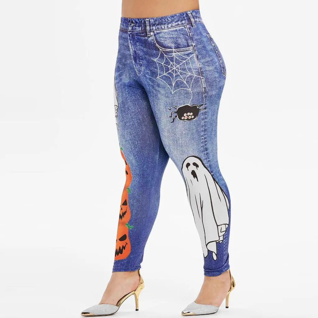 Мода женщин размера плюс паук призрак тыква Хэллоуин ПРИНТ леггинсы брюки