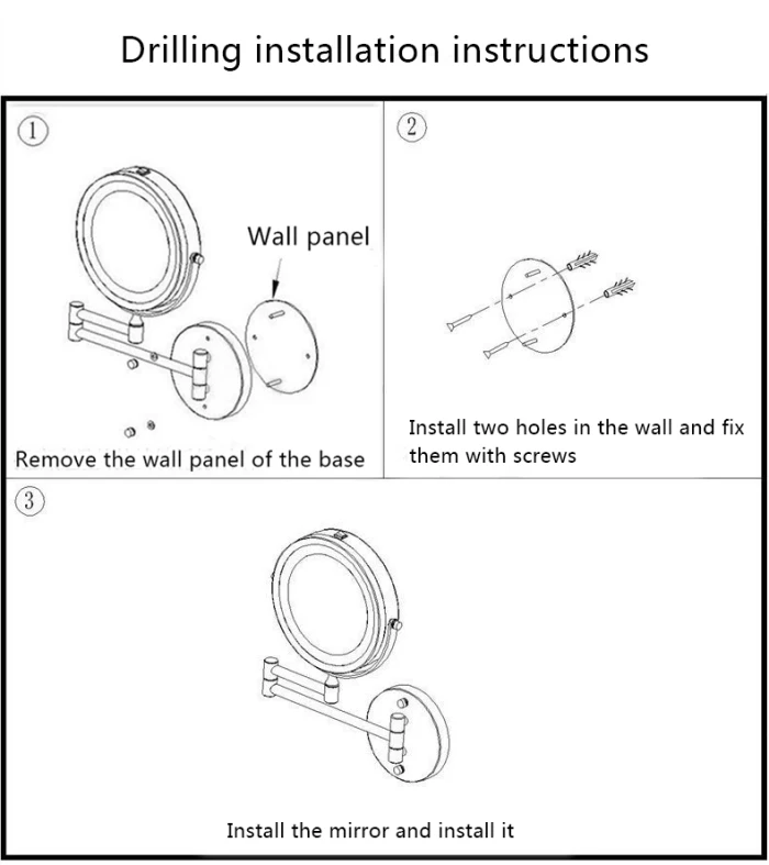 LED Double Sided Makeup Vanity Mirror Wall Mount 10x Magnification Swivel Extension Mirror FP8