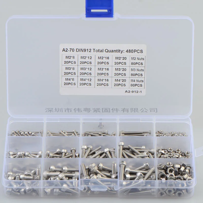 480 шт. M2 M3 M4 набор винтов из нержавеющей стали 304 с шестигранной головкой A2-912-1 Вес изделия: 408 г Размер гаечного ключа: M1.5 M2.5 M3