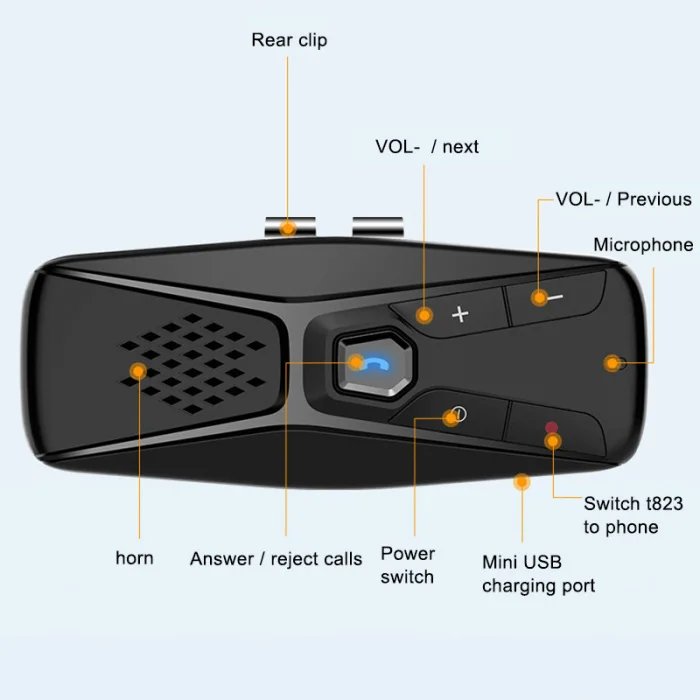 5. Встроенный датчик движения для автоматического включения питания: начинайте Вождение без задержек, так как этот Bluetooth автомобильный комплект без рук переключается на автоматическое питание и подключается к телефону при открытии автомобильной двери.