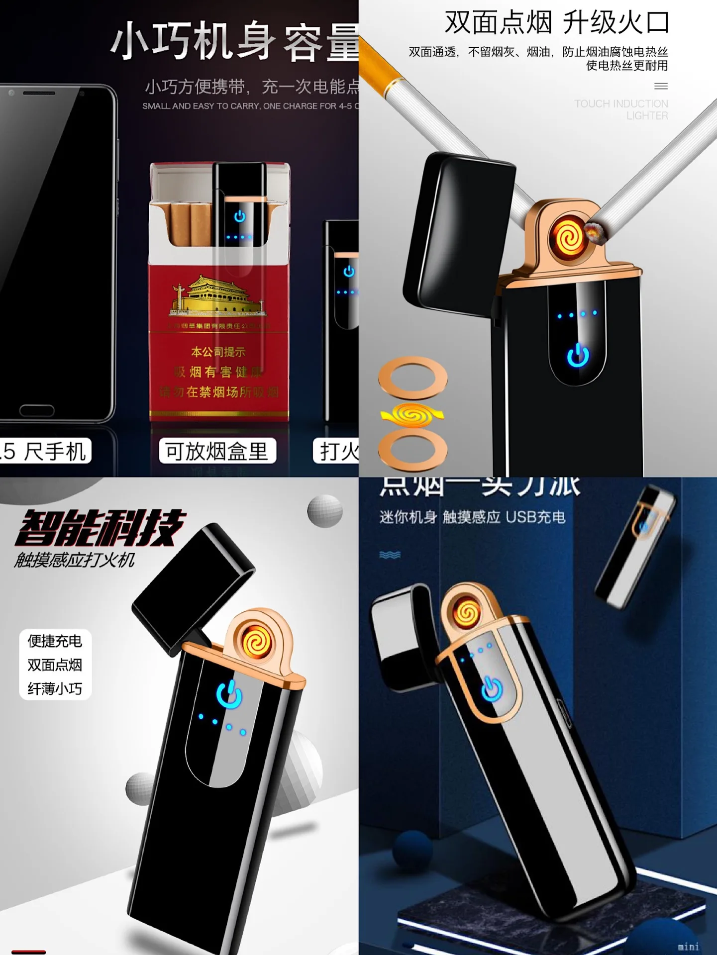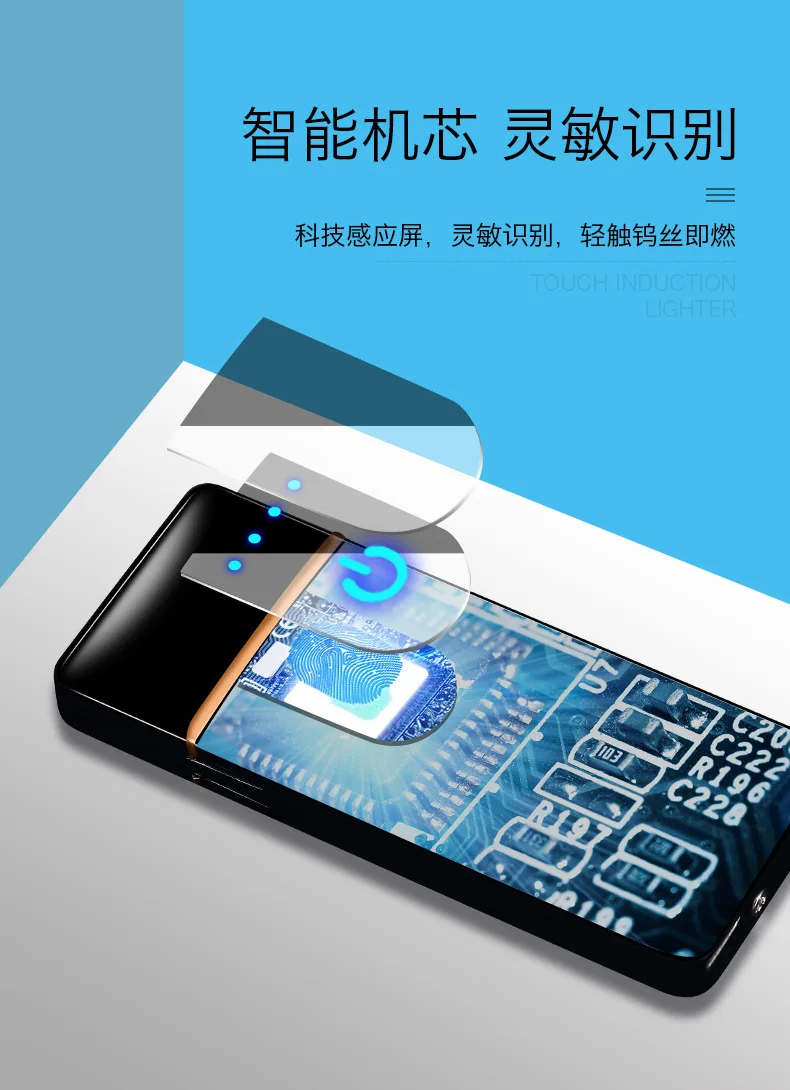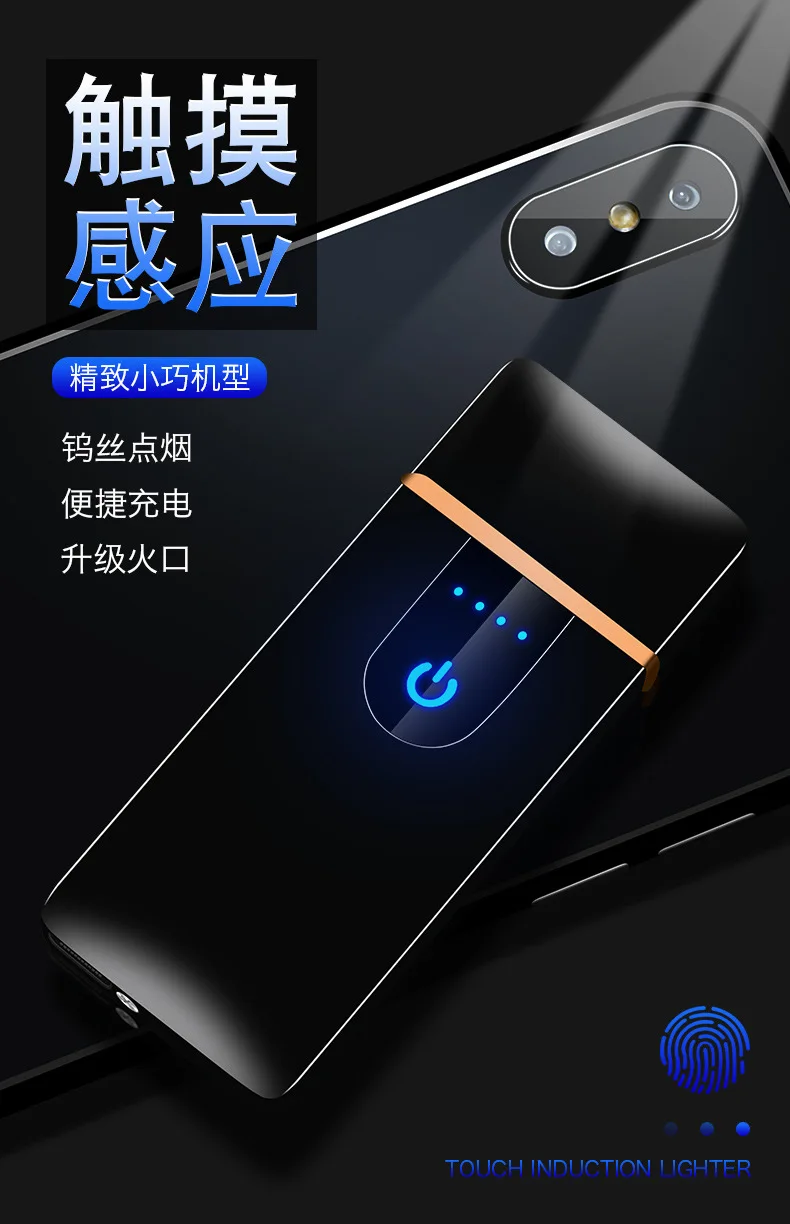 Перезаряжаемая зажигалка с сенсорным сенсором, ветрозащитная электронная ультратонкая USB Зажигалка для сигарет, металлическая на заказ