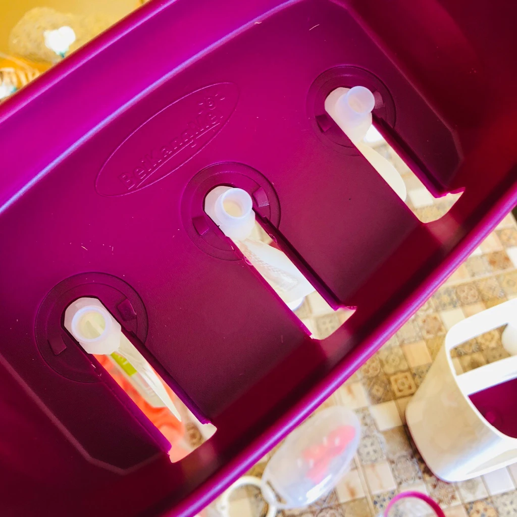 • Затем нажмите, чтобы вытолкнуть пюре вниз по трубам и выдавить их в мешки ниже. Если вы заполнили каждую трубку, она обеспечит идеальное количество пюре, чтобы заполнить каждый мешочек.
