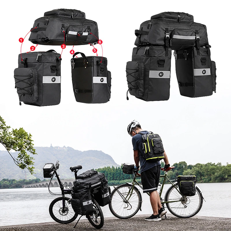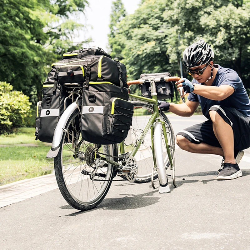 Водонепроницаемый MTB дорожный велосипед 3 в 1 седло мешок Велоспорт Двусторонняя задняя стойка заднее сиденье Pannier пакет чемодан Перевозчик 75L