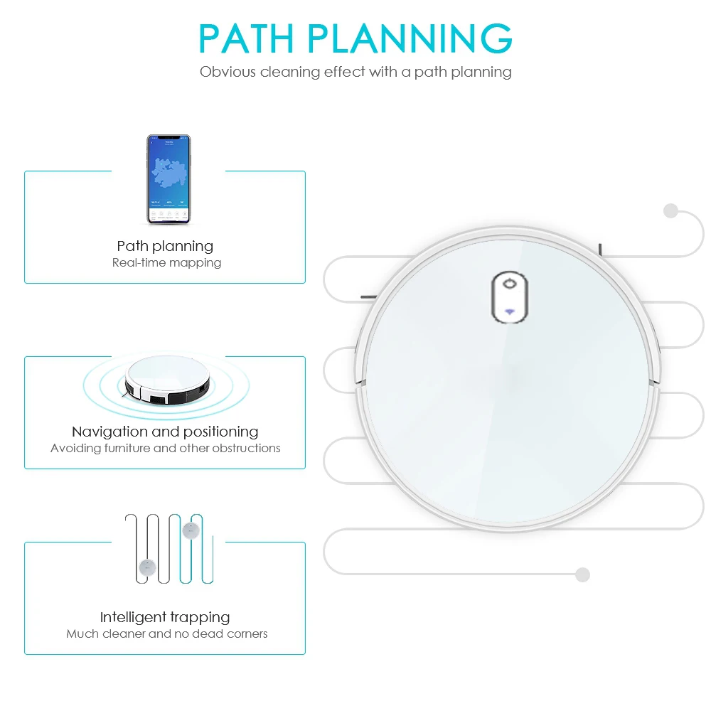 Робот-пылесос умная Чистка 2100pa Высокая Всасываемость LDS Лазерная навигация Интеллектуальный электрический контроль Три режима очистки Его фильтр может автоматически поглощать воду и поддерживать достаточное содержание воды. Одиночный режим подметания, одиночный режим подметания, несколько режимов подметания и мытья, Эффективная очистка пола. Умнее зоны уборки Установите область очистки или очистки на карте приложения, установите цель, она автоматически построит карту очистки в пути. СПД отображение лазера Датчик LDS сканирует комнату и создает карту комнаты, а затем эффективно перемещается по всему уровню вашего дома и отслеживает его местоположение. Интеллектуальный электронный резервуар для воды Равномерно выйдите из воды, позаботьтесь о деревянном полу. 2100Pa Мощное всасывание Робот может пылесосить место, где грязь, пыль скрываются и даже большие мусор, такие как зерновые, где бы они ни находились, перемещаясь по мебели и под кроватью, угловой мусор и другие труднодоступные места. Пересекающие препятствия до 2 см Он может пересечь препятствия высотой до 2 см, включая общие пороги или другие вещи, такие как кабели среди мебели, так же легко, как ходить на твердом полу. Автоматически инфракрасный Chargeback и возобновляется. Работает в течение до 2 часов, затем автоматически возвращается на зарядную базу для перезарядки и повторной очистки незавершенной работы.