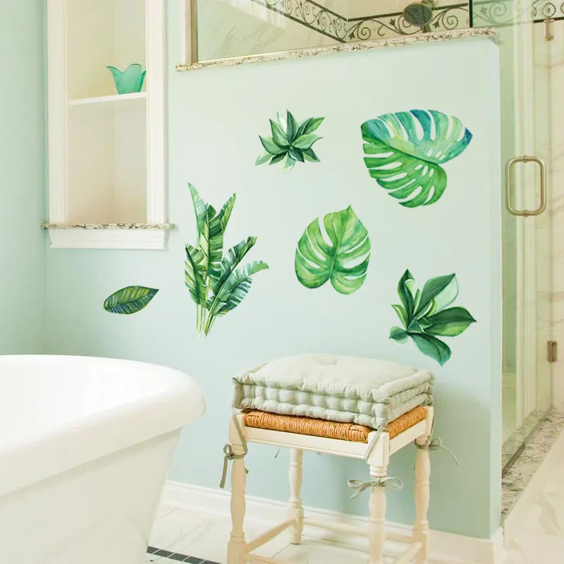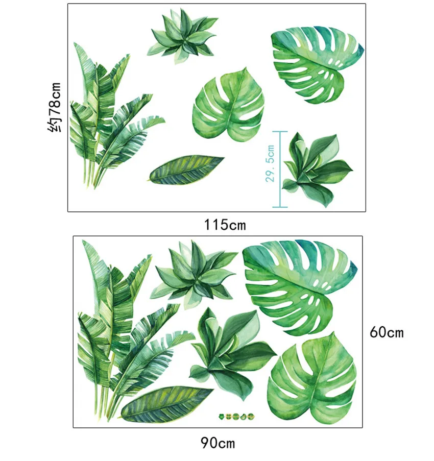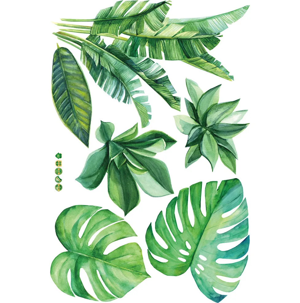 Зеленые листья банана, свежие настенные Стикеры для домашнего искусства, виниловые обои для гостиной, декор для детской комнаты, зеленые листья, обои