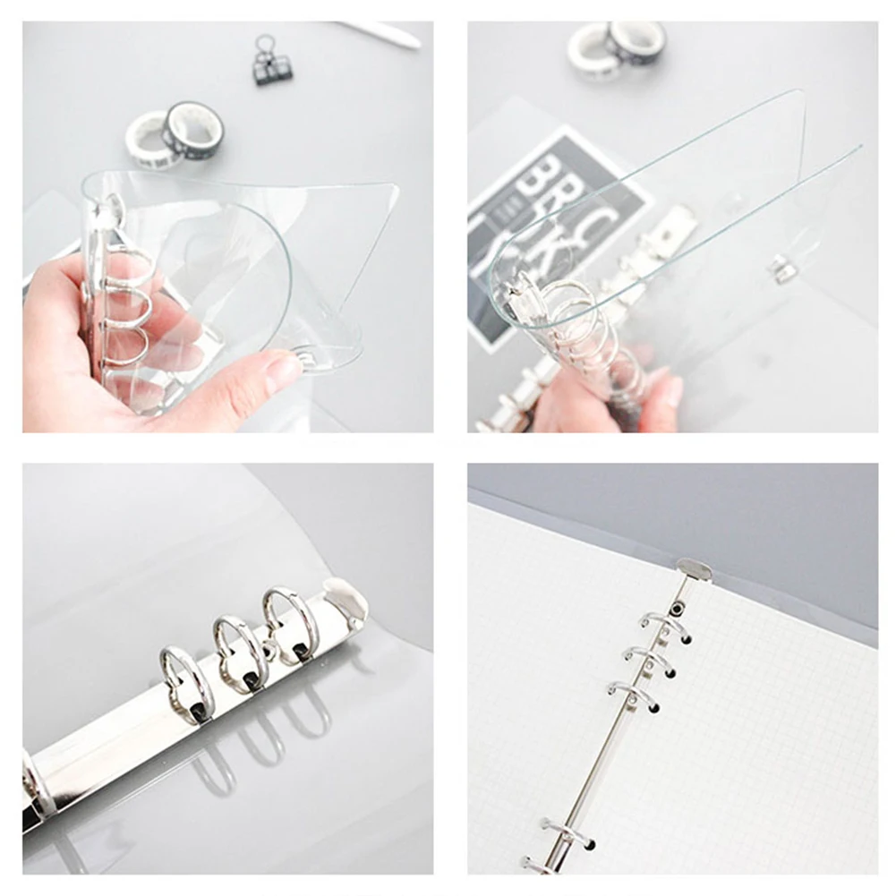 -Прозрачная Обложка из ПВХ с защелкой для безопасного закрытия, шесть никелированных механизмов открытия и закрытия для легкого добавления или удаления страниц и безопасного хранения страниц.