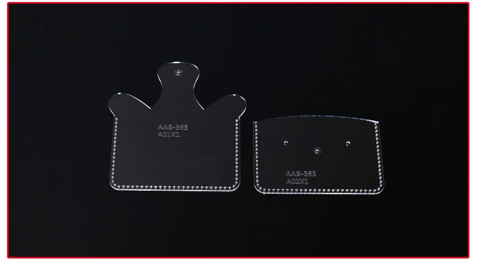---- 1.We adopt acrylic as the material of our templates.Clear acrylic templates are developed to give the leather craftsman the advantage of being able to precisely locate and view the leather surface for optimal placement . This also allows you to avoid defects before cutting avoiding waste.