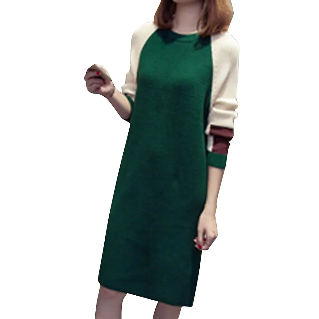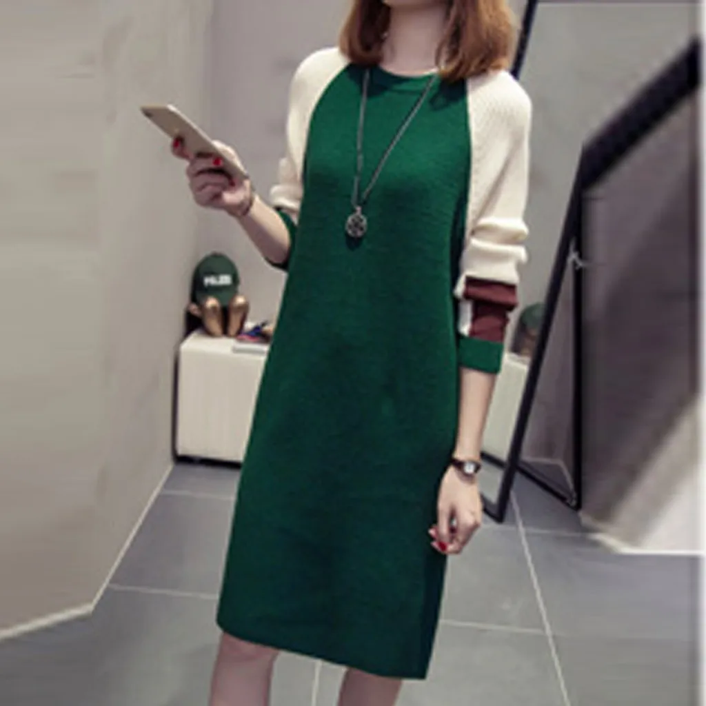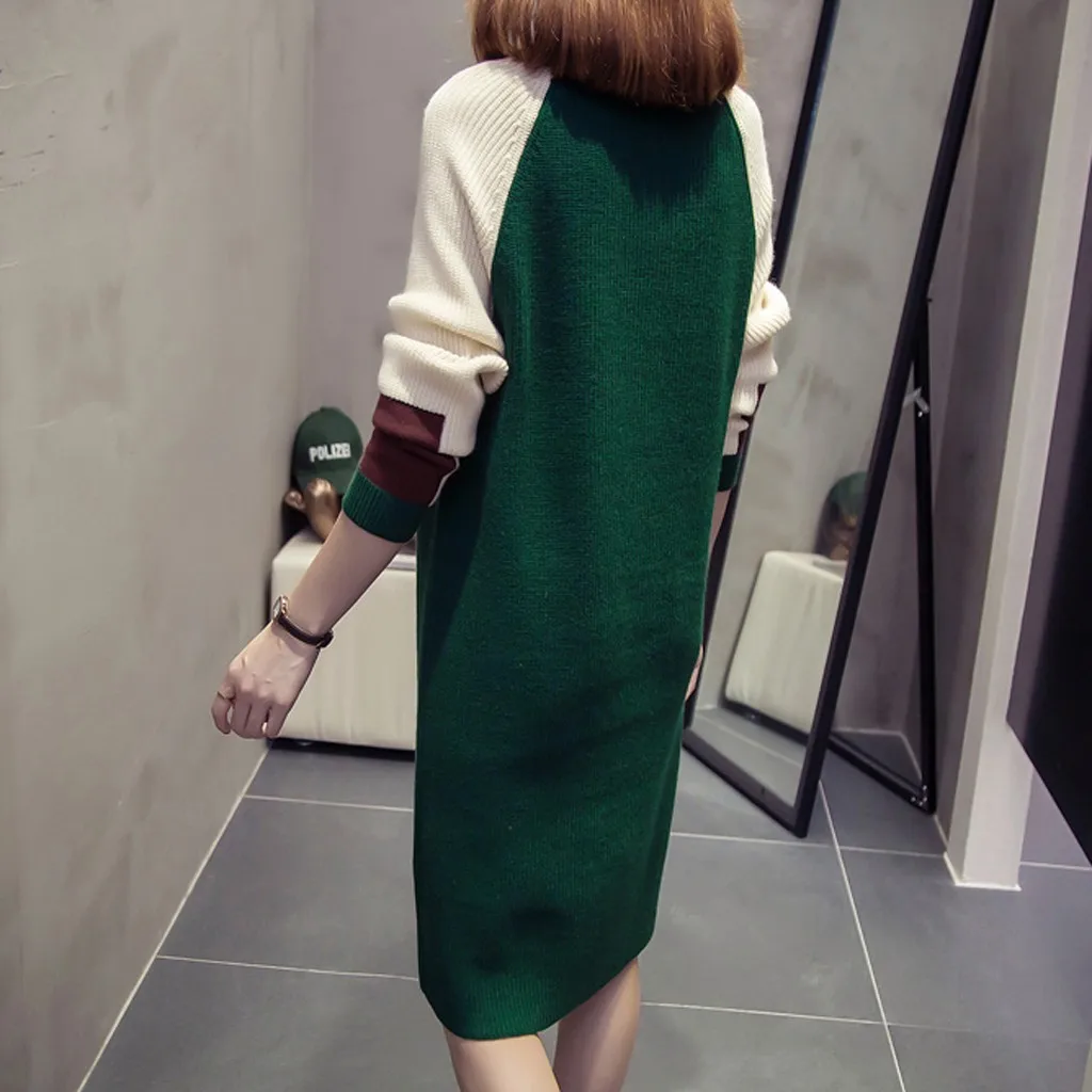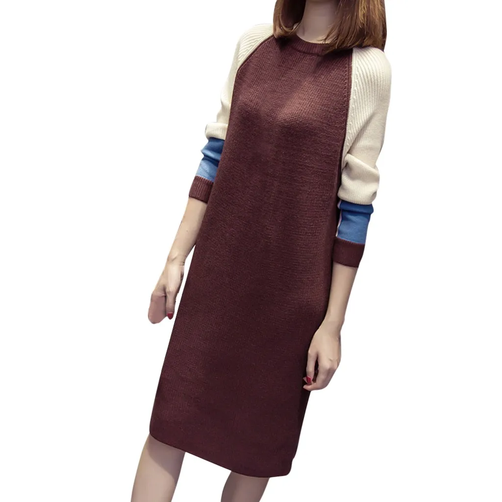 Женское осеннее платье в стиле пэчворк, модное корейское свободное платье с круглым вырезом, вязаный свитер с длинным рукавом, платья, robe pull femme hiver 50 *