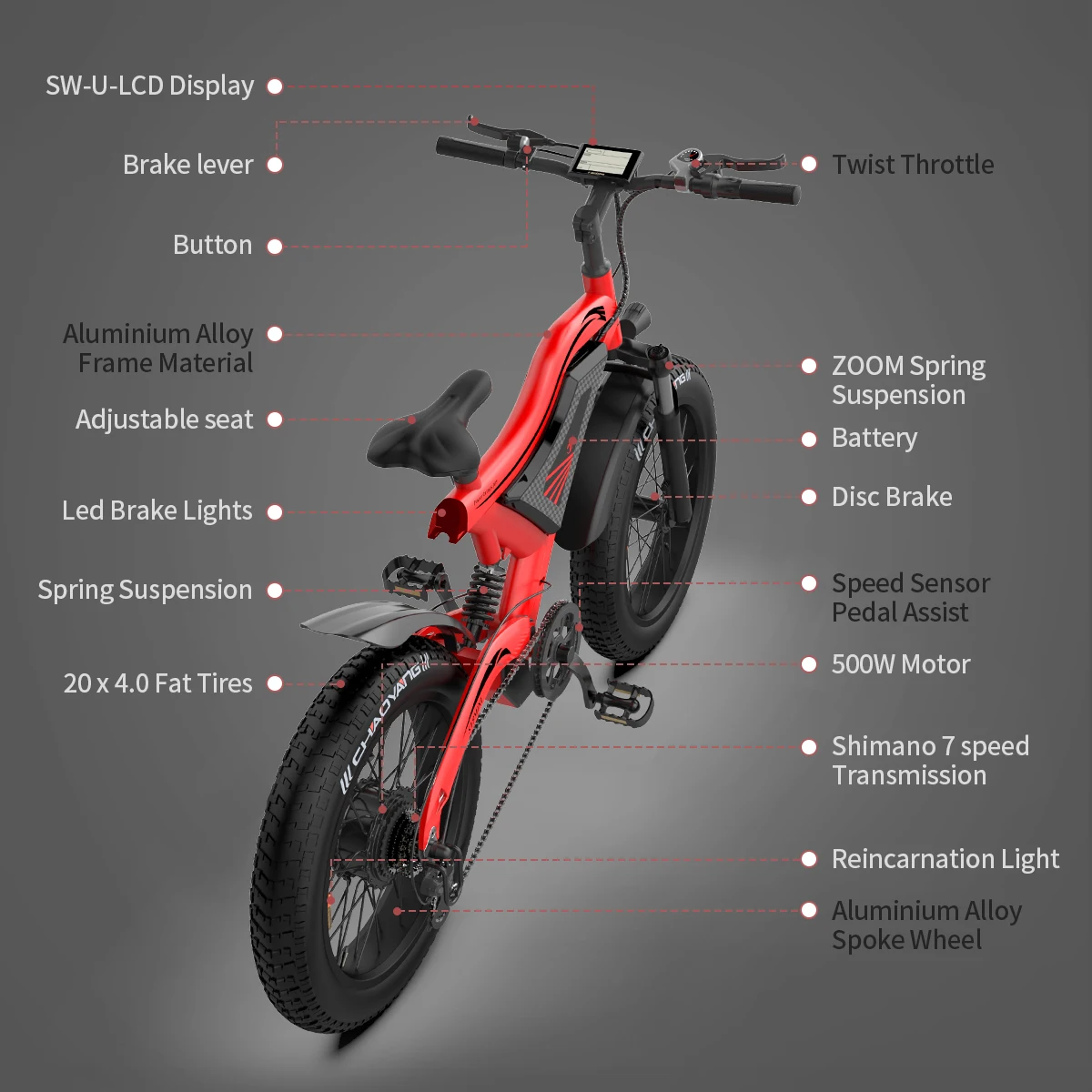 Двигатель: 500 Вт грузовик бесщеточный мотор-редуктор. В режиме полной зарядки и чистой мощности расстояние езды составляет 25-35 км Размер батареи: 48V 11.6Ah литиевая батарея Samsung • Питание: Интеллектуальный контроллер 48 В 22A Шины: 20x4,0 дюймов Толстая шина. Может адаптироваться к снегу, песку и другим комплексным рельефам. Зарядное устройство: 110-220 В (на полную зарядку аккумулятора требуется 4-6 часов, чтобы продлить срок службы аккумулятора, регулярно заряжайте его) SW-U-LCD: Вы можете установить диаметр колеса, скорость, подсветку, блок пробега, режим езды, PAS передач и зарядить ваш телефон. СВЕТОДИОДНЫЙ экран отображает мощность батареи, скорость, пройденное расстояние, шестерню, мощность. Режим езды на велосипеде: Три режима езды: Педальный режим/режим наддува/режим питания (электрические велосипеды из Германии склад не имеют режима питания) Максимальная скорость: В полностью заряженном состоянии, максимальная скорость может достигать 24.8 Мп/ч
