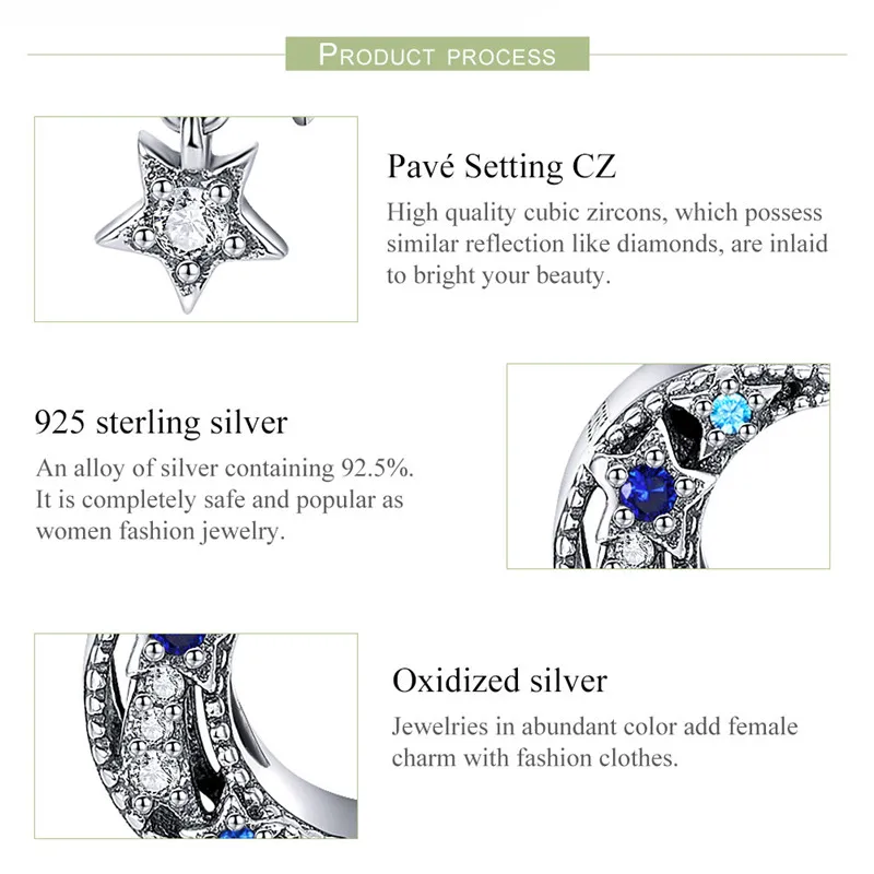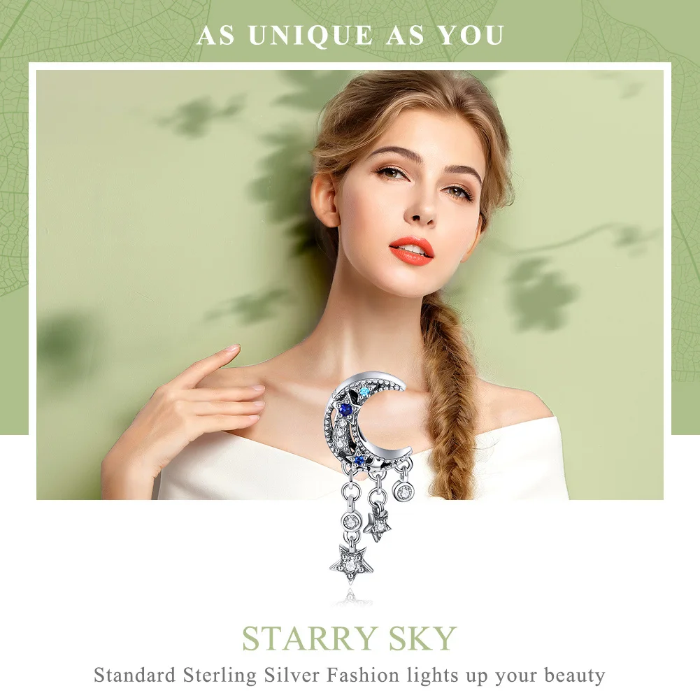 2019 подлинные 925 пробы серебряные сверкающие лунные подвески в виде звезд подходят к оригинальным браслетам ожерелья ювелирные изделия BSC023