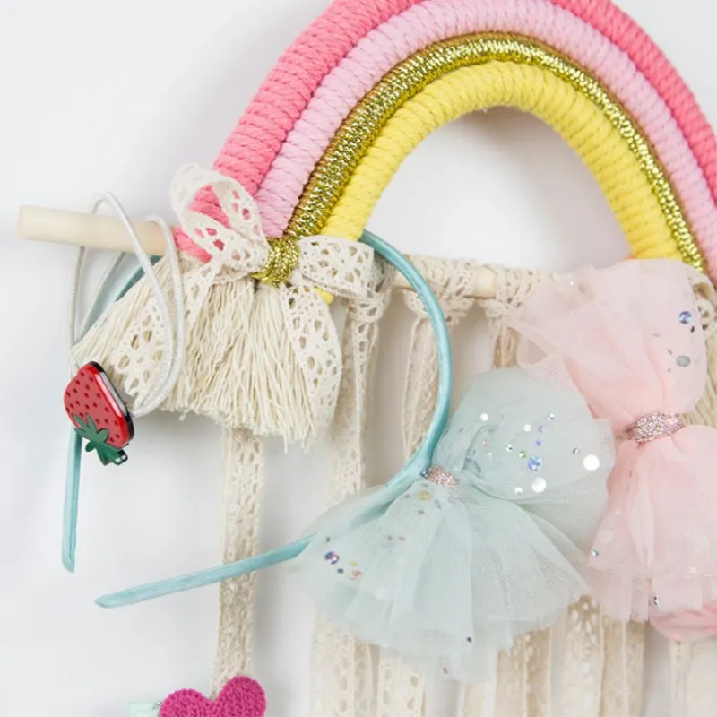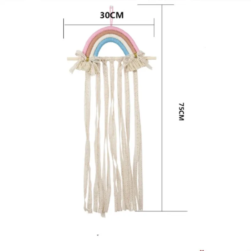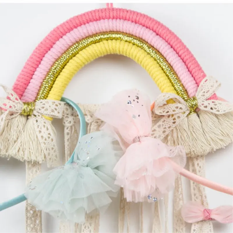 INS скандинавские ручные плетеные радужные кисточки, детские заколки для волос, пояс для хранения, для девочек, банты для волос, органайзер, держатель в полоску, настенные Висячие украшения25