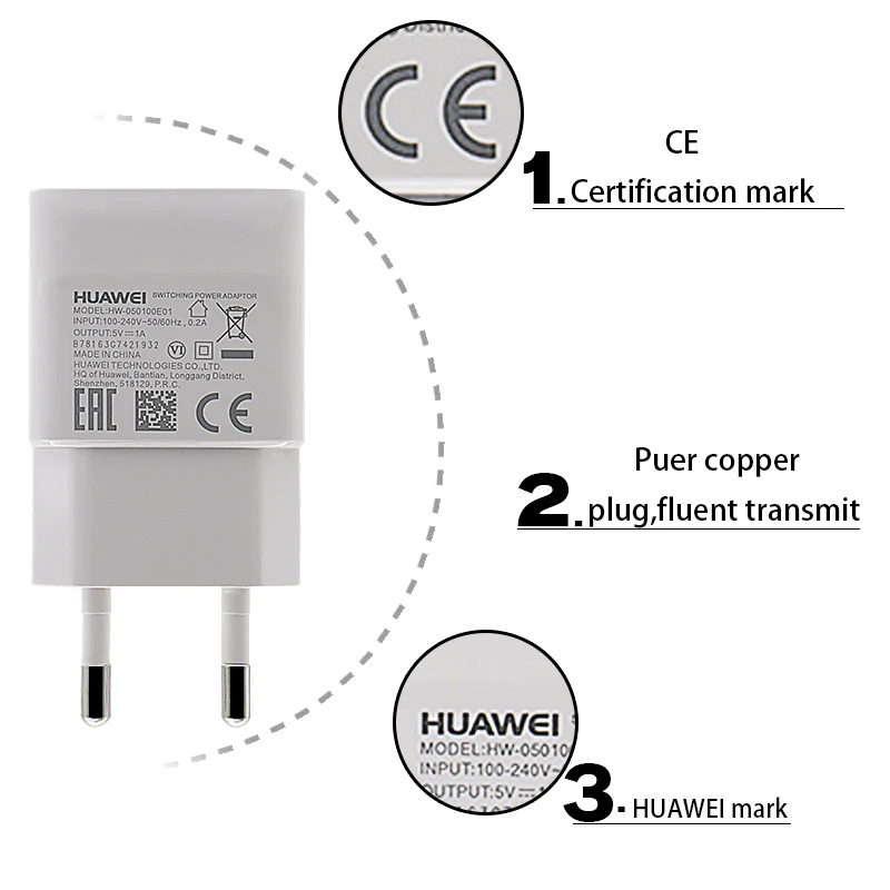 Оригинальное зарядное устройство Huawei 5V1A адаптер зарядного устройства usb 2A Type-c кабель для honor 7x 3x 4a 4c 4x g7 p7 p6 5c 6a 5x6 6c 6x p6 p7 p8 g9 Характеристики продукта: Вход: AC 100-240V ~ 50/60HZ, 0.2A Выход: 5,0 V ~ 1.0A Кабель Длина: 100 см TYPE-C кабель