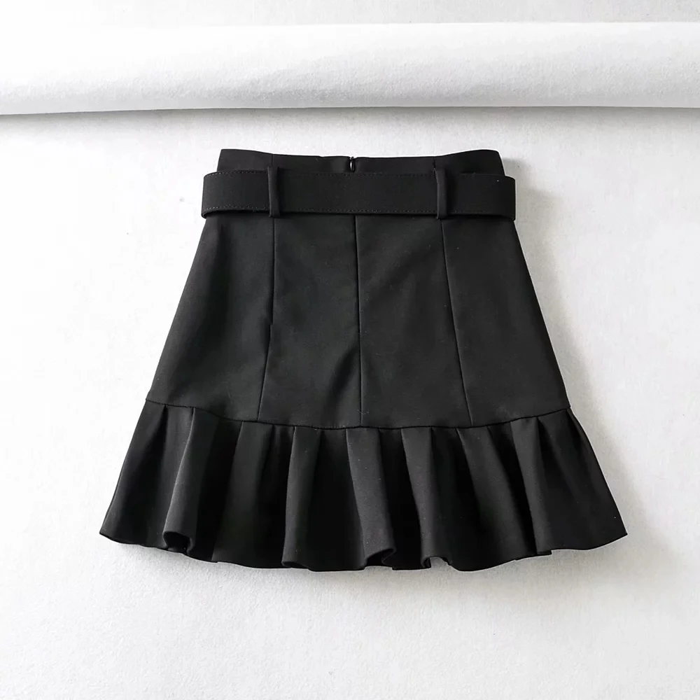 Новинка, Женский костюм с поясом, юбка zora vicky, Женская офисная юбка с оборками, Faldas, высокая талия, тонкая мини-юбка с поясом, юбка za, черная, 2020