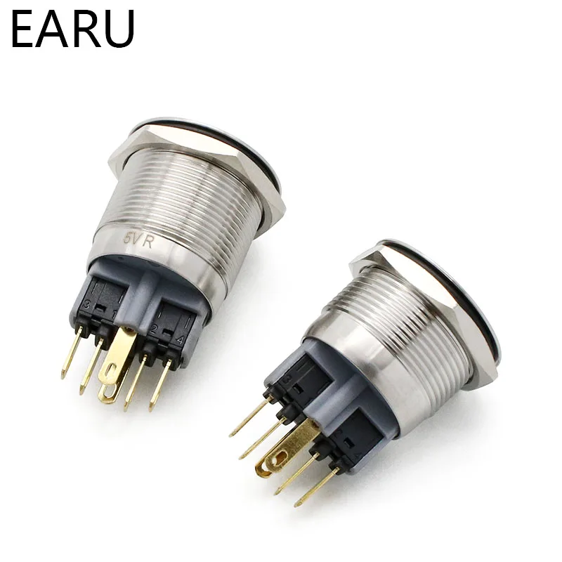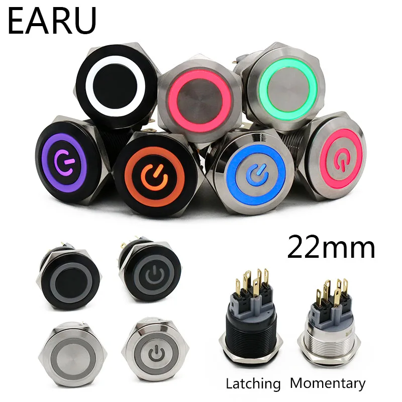 22 мм Водонепроницаемый металлический кнопочный выключатель светодиодный светильник черный Выключатель без фиксации двигателя автомобиля ПК Мощность переключатель 3V 5V 12V 24V 110V 220V