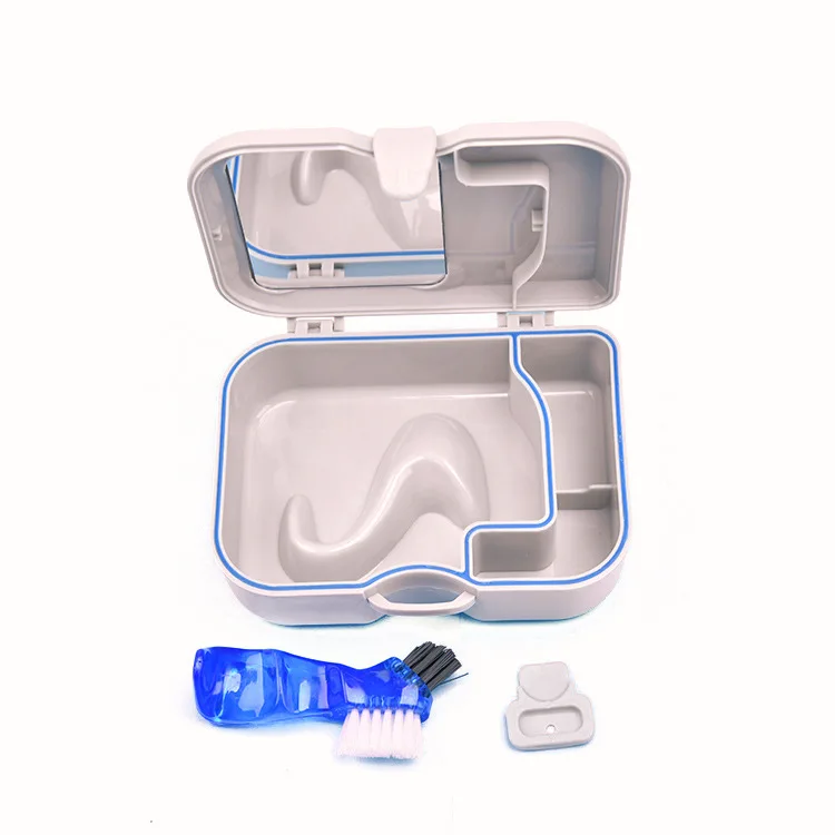 Feature: One plastic denture retainer box with 1 mirror and 1 cleaning brush. The brush and the mirror make it more convenient for users to wear their false teeth. Easy to open with thumb release clap Easy Brush with effort-saving and firm-grip design Durable and convenient Non-toxic and no smell Good tool for cleaning denture Mini style and easy to carry out Can be storage denture or clean denture Material:Medical Grade PP Size:12X9X4cm/4.7''X3.5''X1.6'' Package Content: 1 X Denture Box with mirror and brush