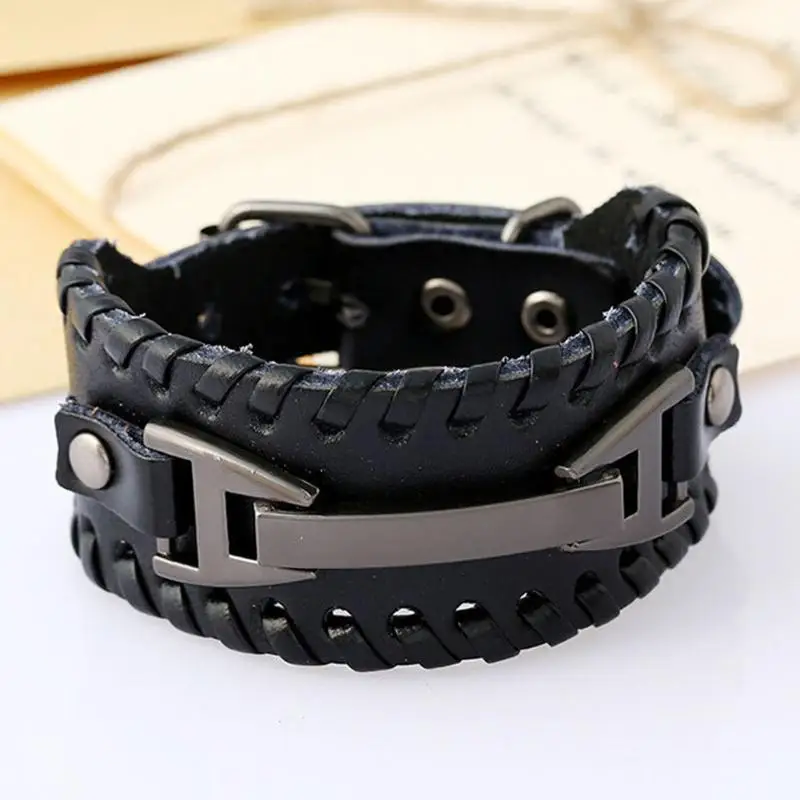 Ретро Широкий браслет из воловьей кожи с заклепками, металлический очаровательный браслет ручной работы для унисекс, ювелирное изделие, подарок