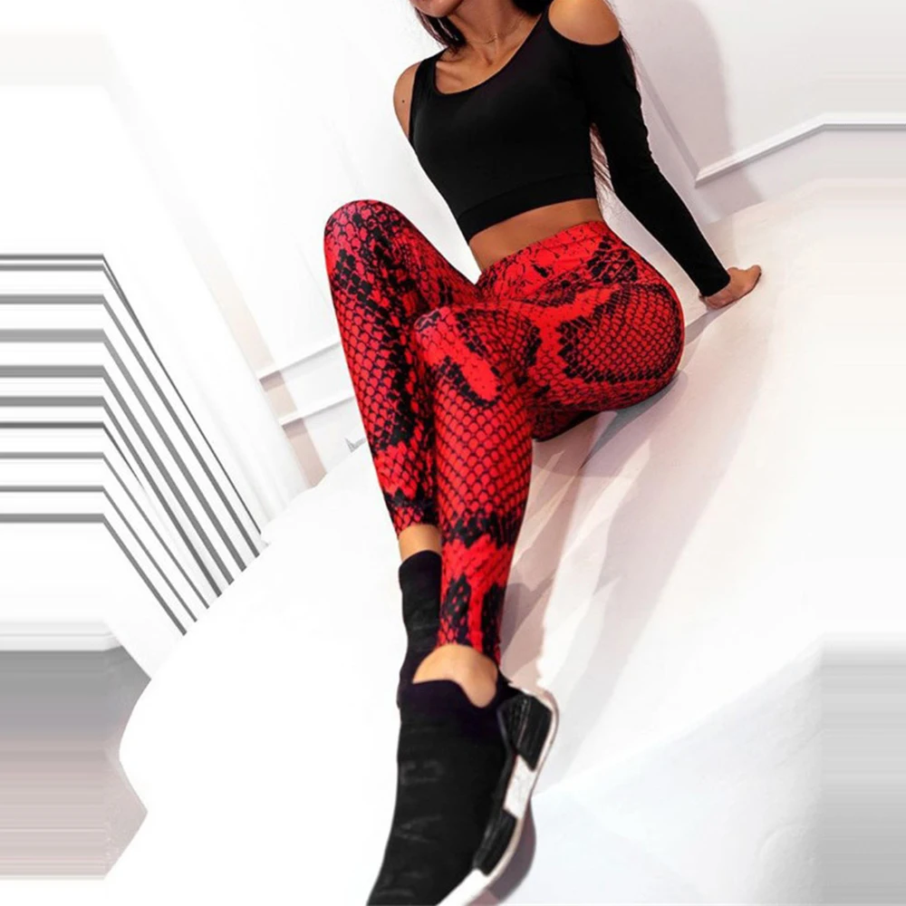 2019 качество красные туфли из змеиной кожи, с принтом Леггинсы для женщин, пуш-ап, леггинсы для фитнеса спорта тонкие Джеггинсы высокие эластичные 3D Леггинсы с принтом 35