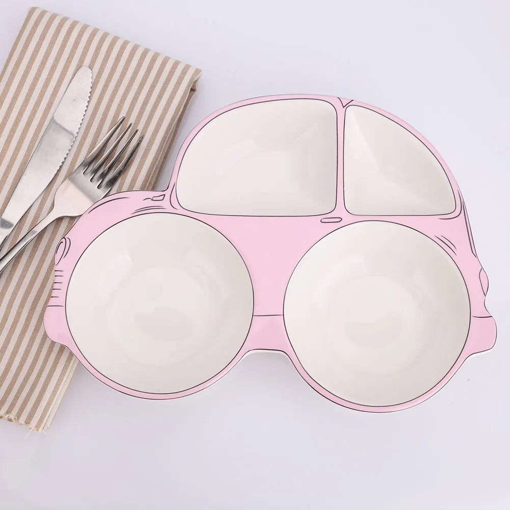 Baby Car Shape Ceramic Feeding Plate Children's Plate Cute Creative Household Dinnerware Fruit Snack Breakfast Dinner Plates