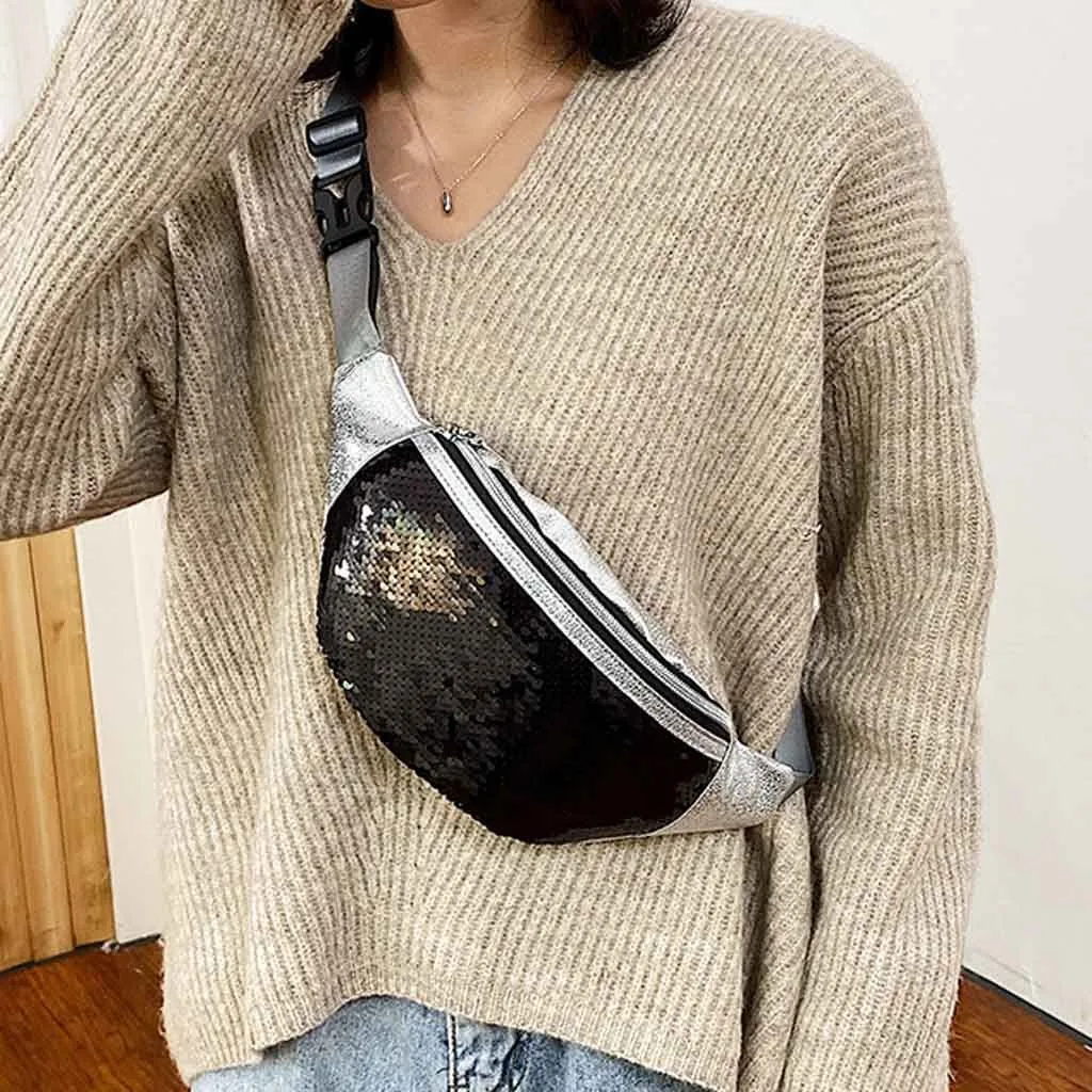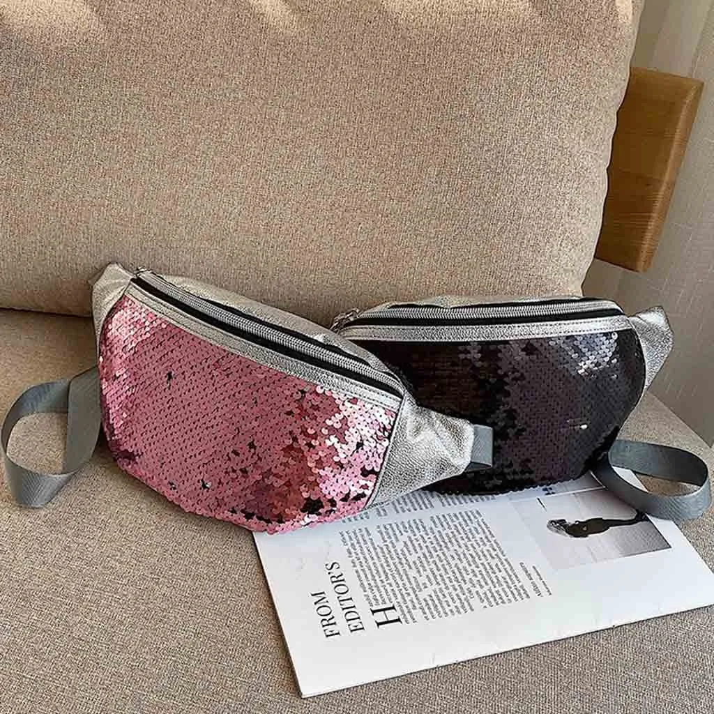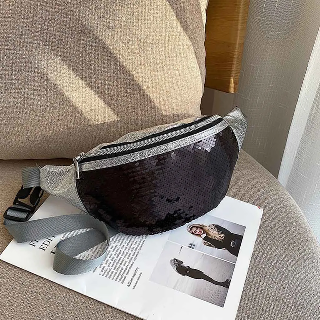 Женская сумка через плечо, с перекрещивающимся ремешком на талии, новая модная простая универсальная Повседневная сумка с блестками, H1