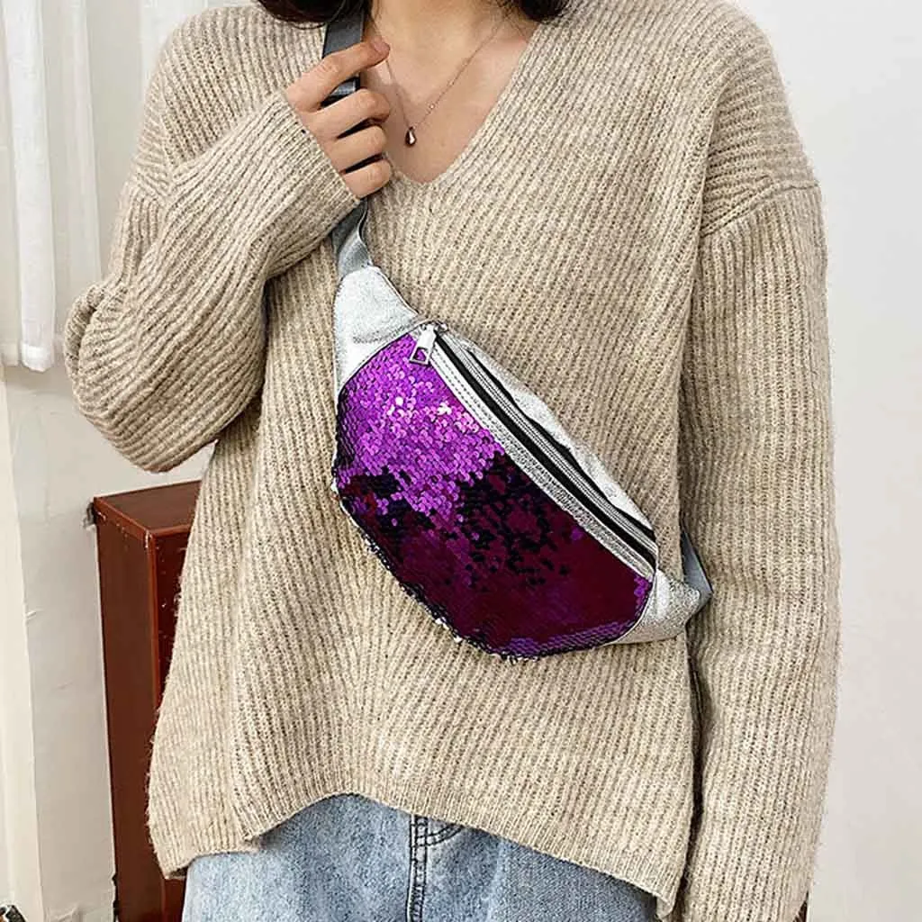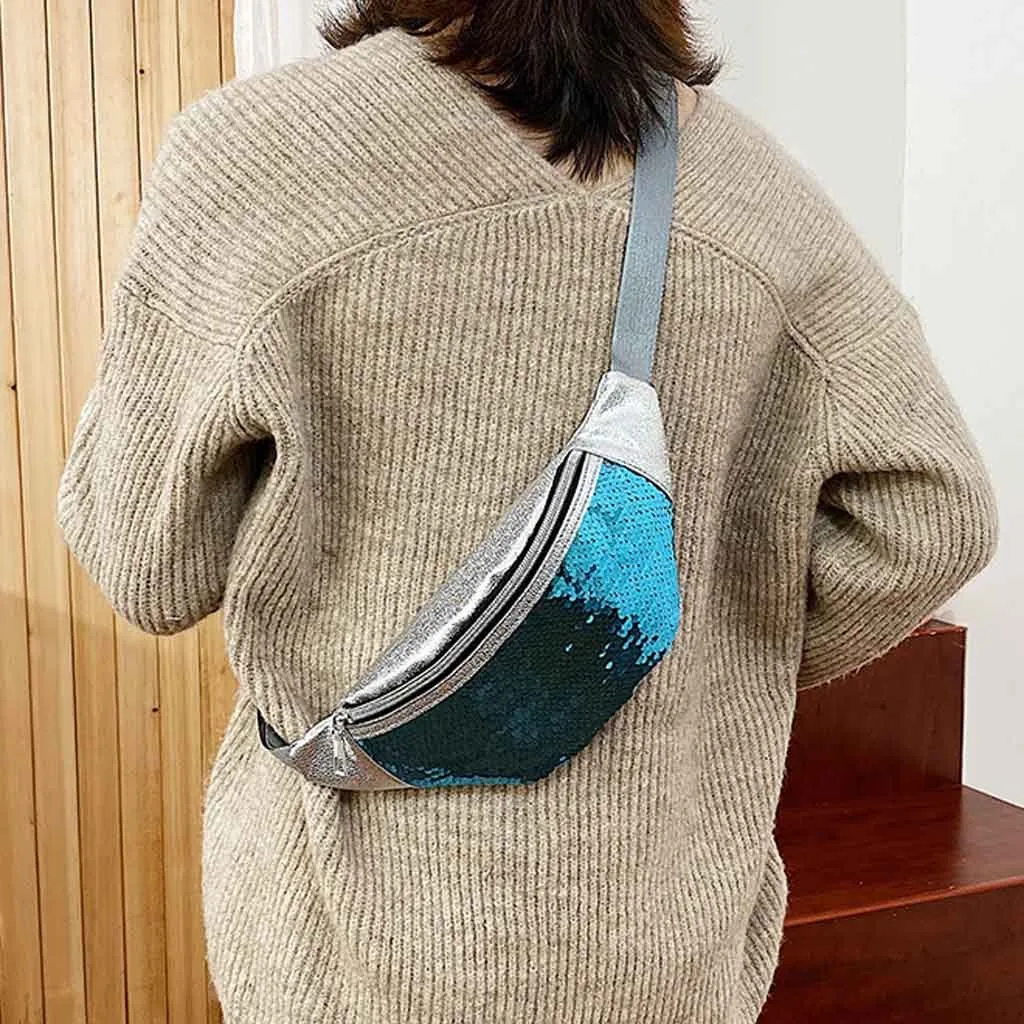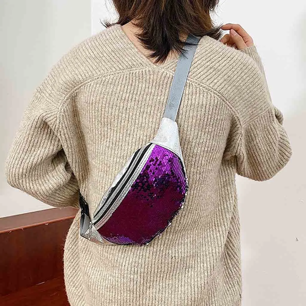 Женская сумка через плечо, с перекрещивающимся ремешком на талии, новая модная простая универсальная Повседневная сумка с блестками, H1