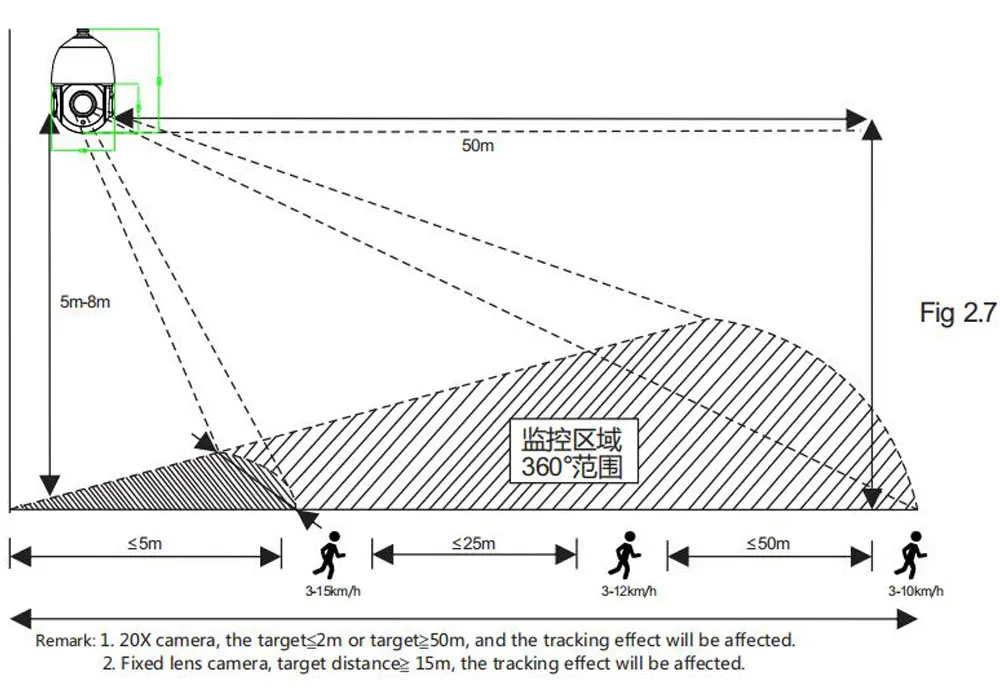 Инструкции по установке оборудования1. Для регулировки правильного угла установки обратитесь к следующей схеме.2. 3D humanoid Автоматическая отслеживающая камера может воплотить будильник приложение push, аудио пользовательский сигнал тревоги3. Когда в то же время появятся несколько целей, система определит приоритетность отслеживания относительно крупных целей.