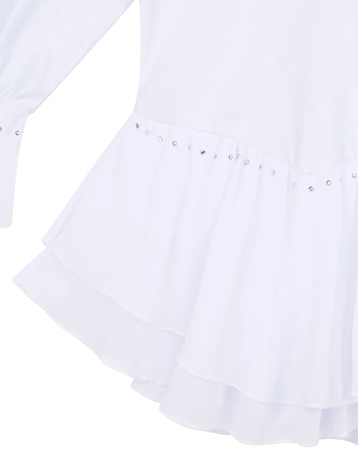 Платье для катания на коньках изготовлено из полиэстера, шифона и сетчатого материала, ручная стирка.