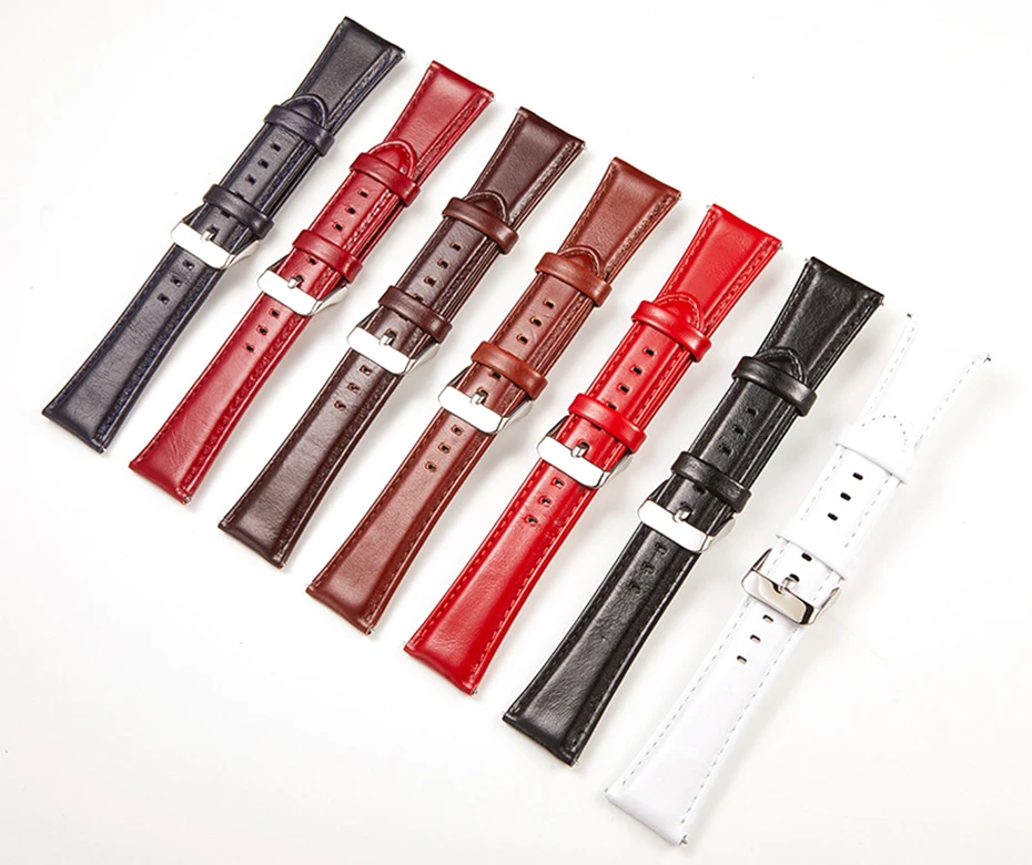 [Кожаный ремешок для Samsung, Huawei, Huami и т. Д.] Удобный пружинный переключатель Материал изделия: масло воск кожа удобный пружинный переключатель Материал: двусторонний верхний слой из воловьей кожи Размер: 18 мм 20 мм 22 мм 24 мм Серебряная Пряжка Цвет: черный, светло-коричневый, темно-коричневый, большой красный, винный красный, королевский синий, белый.