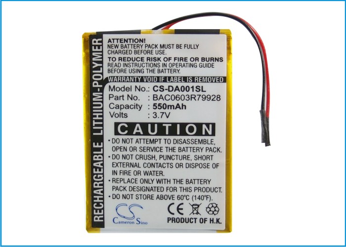 Cameron Sino Модель: CS-DA001SL номер детали: Креатив BAC0603R79928 Совместимость для: креативный DVP-FL0006 Zen X-Fi 16 Гб Zen X-Fi 32 Гб Zen X-Fi 4 Гб Zen X-Fi 8 Гб Вольт: 3,7 в Тип: литий-полимерный Цвет: черный Емкость: 550 мАч Размер: 46,71x33,63x2,80 мм Гарантия: 12 месяцев