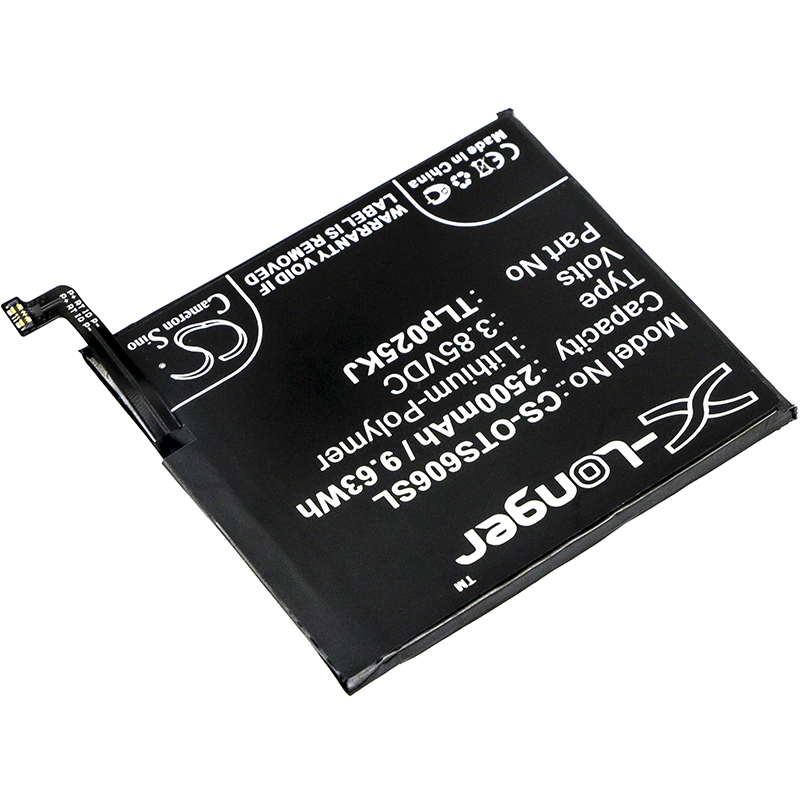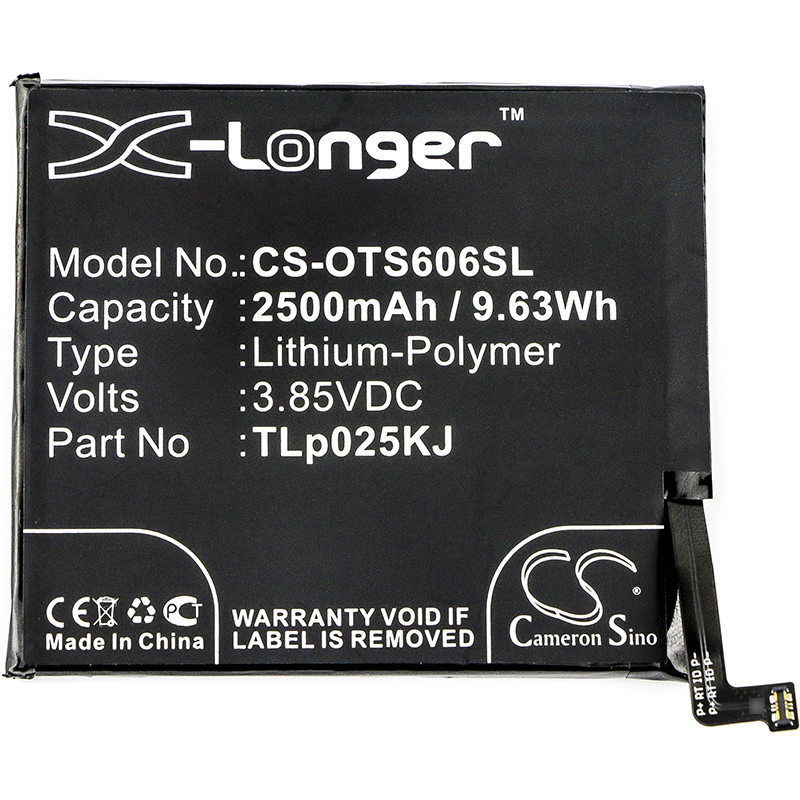 Кэмерон китайско Модель: CS-OTS606SL номер детали: Alcatel Работает с любым оператором, TLp025K1 TLp025KJ Совместимость: для Alcatel One Touch Idol 5S One Touch Idol 5S LTE OT-6060S OT-6060X Вольт: 3,85 V Тип: литий-полимерный аккумулятор Цвет: черный Ёмкость: 2500 мАч/9,63 Втч Размер: 72,90x63,58x3,20 мм Гарантия: 12 месяцев