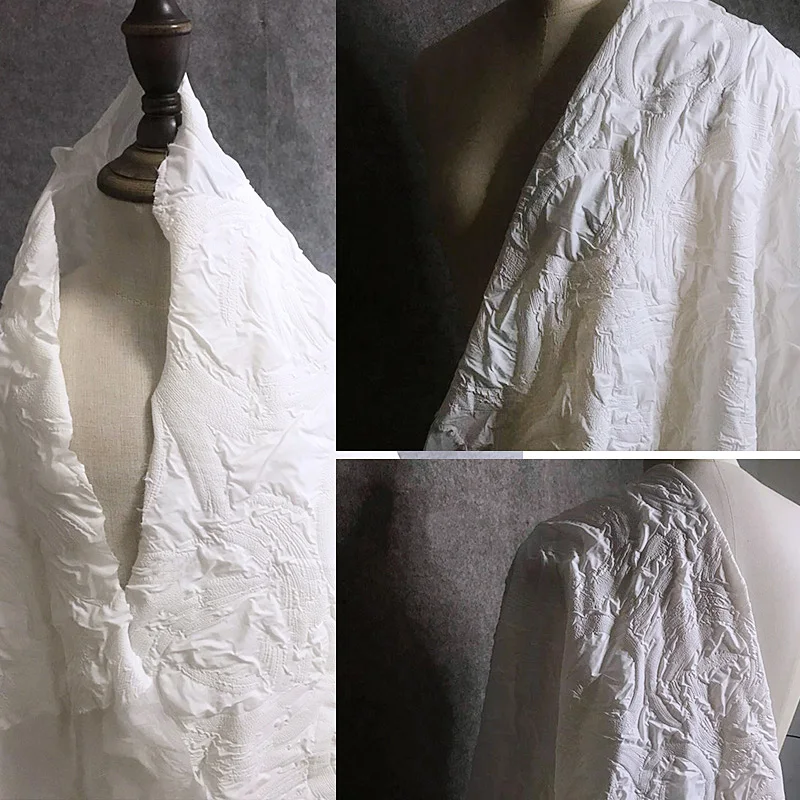 Chzimade 45x145cm Nylon White Color Pleated Crushed Mesh Fabric For Skirt Dress Diy Sewing Materials