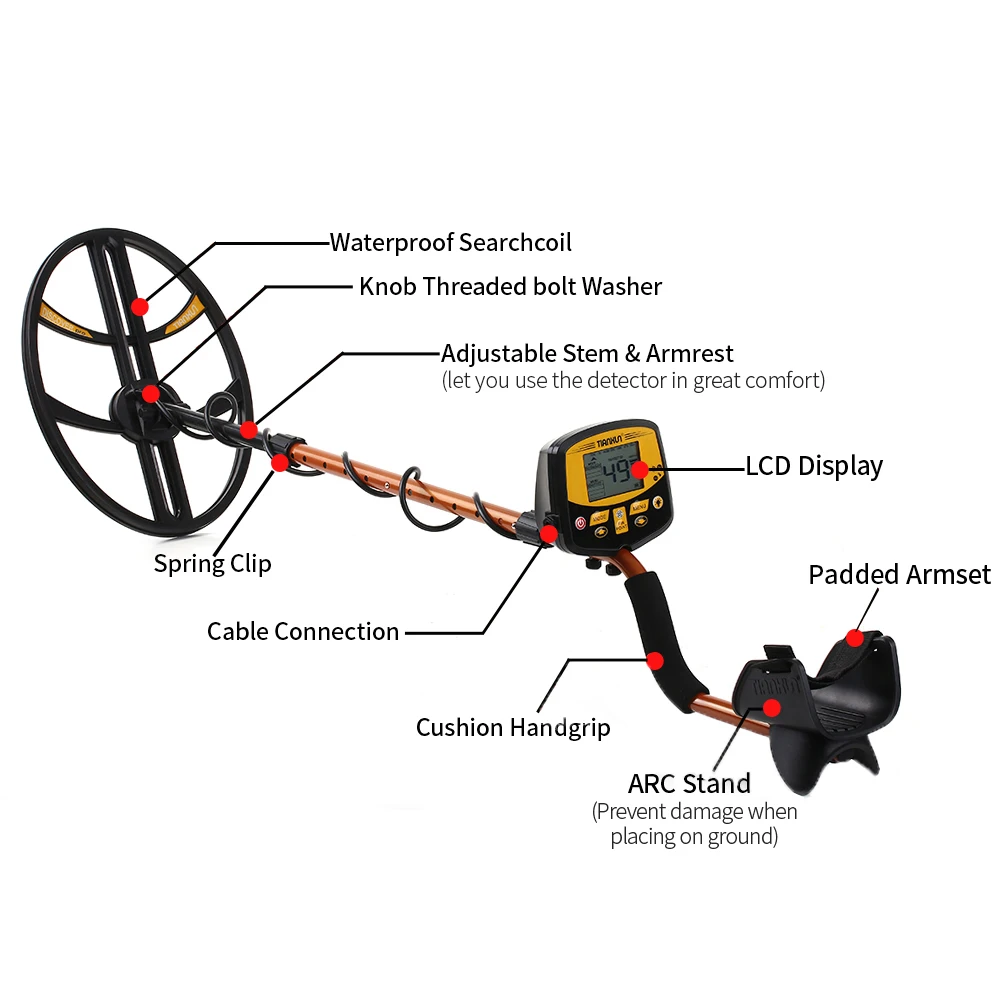Технические характеристики: Цвет: черный + коричневый Материал: АБС + алюминиевый сплав Глубина обнаружения: US 25 Cent/US 50 Cent: 280 мм 3 режима обнаружения: Все металлы (обнаруживают все виды металла), диски (дискриминирующий тип металла), точечные (найдите точное местоположение цели) 3 тона идентификации аудио: низкий тон (ID: 1-39), средний тон (ID: 40-79), высокий тон (ID: 80-99) Обнаружение предметов: металл (железный гвоздь, покрытие из железа, алюминиевое кольцо, маленький алюминиевый продукт, монеты, золото, бронза, серебро) Частота: 7,68 кГц Напряжение: 7,2-9V Источник питания: 1*9V 6F22 батарея (не входит в комплект) Ток: в режиме ожидания: 40 мА, макс.: 120 мА Режим индикации: режим ЖК-дисплея и режим звука Чувствительность: регулируемая, уровень 1-12 Управление: переключатель мощности Объем: Регулируемый Поисковая катушка: водонепроницаемая, взаимозаменяемая Применение: тестирование металлического инородного тела сырья, топлива и продуктов питания, обнаружение подземного трубопровода и линии, геологии, исследования, обнаружены похороненные сокровища золота, серебра и металла артефакты. Размер поисковой катушки: 380*290 мм/15,0 * 11.4in (Д * Ш) Размер блока управления LCD: 135*120 мм/5,3 * 4.7in (Д * Ш) Регулируемая высота детектора: 1070 ~ 1340 мм/35,0 ~ 52,8 дюйма Размер изделия: 380*290*1340 мм/15,0*11,4*52,8 дюймов Вес изделия: 1576 г/55,6 унций Посылка Размеры: 55,5*37,5*15,5 см/21,9*14,8 * 6.1in Вес упаковки: 3542 г/124,9 унций Посылка список: 1 * Главный блок металлоискателя 2 * соединительный стержень 1 * водонепроницаемый супер большой DD поисковая катушка 1 * сумка для металлоискателя 1 * Разъем для наушников 1 * Руководство пользователя (на английском языке)