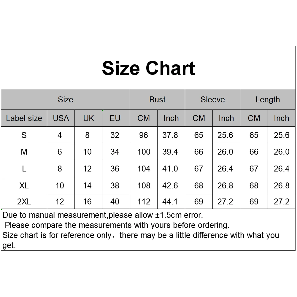 [Наш Размер S] Обхват груди: 96 см/37,8 дюйма, рукав: 65 см/25,6 дюйма, длина: 65 см/25,6 дюйма (прибл.)