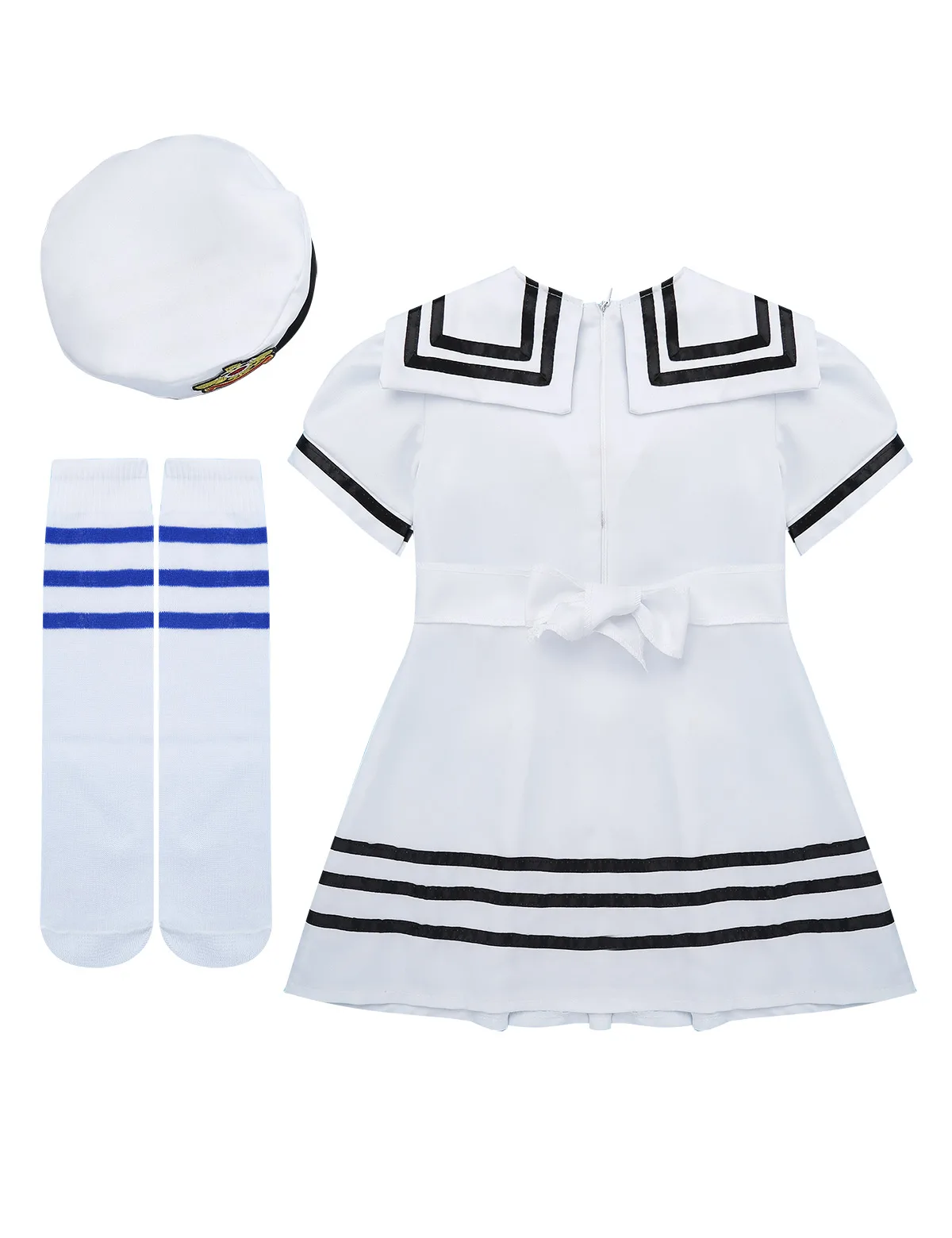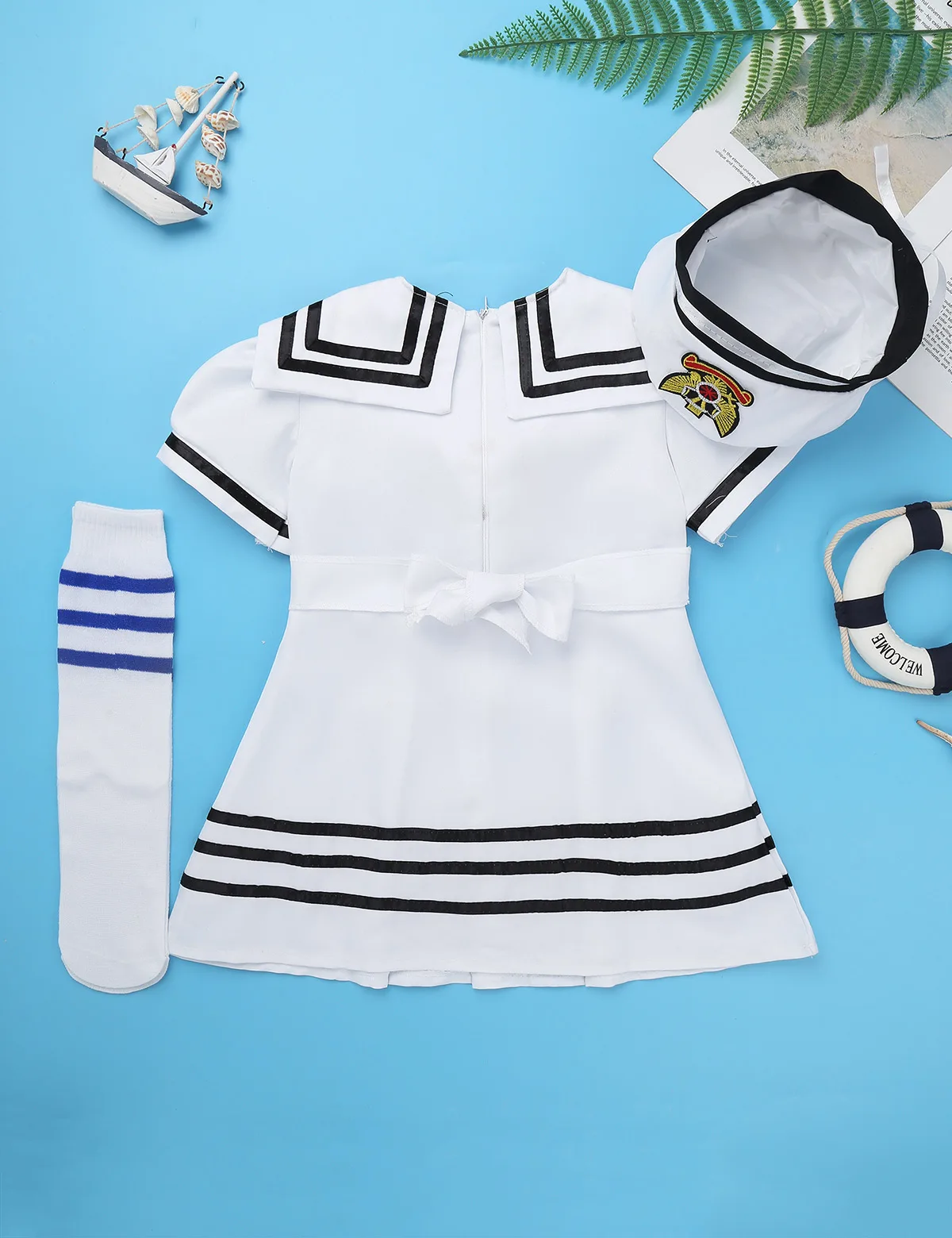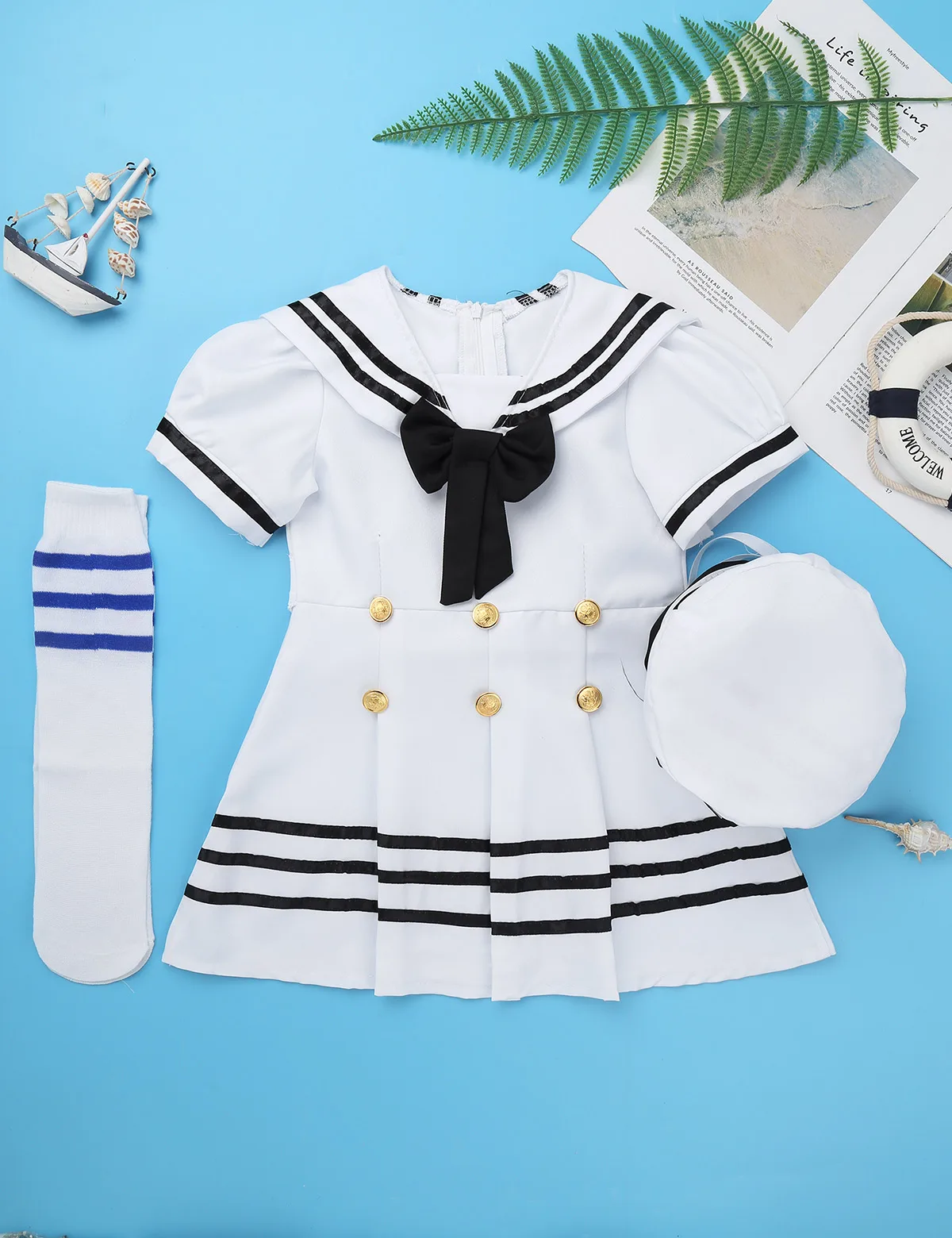 Comes with a matching hat, a pair of striped socks. Make your girl more adorable and charming with this uniform dress!