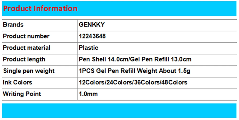 1.Condition: 100% Brand New and High Quality! 2.Brand Name: GENKKY 3.Material : Plastic 4.Color: As Picture 5.Package Include: 12pcs refill +3 pen shell 6.Note: Due to the difference between different monitors, the picture may not reflect the actual color of the item. We guarantee the style is the same as shown in the pictures.