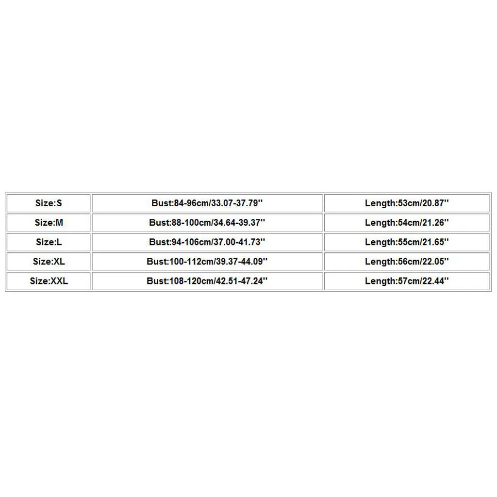 Размер Обхват груди Длина S 84-96 см/33,07-37,79'' 53 см/20,87'' М 88-100 см/34,64-39,37'' 54 см/21,26'' L 94-106 см/37,00-41,73'' 55 см/21,65'' XL 100-112 см/39,37-44,09'' 56 см/22,05'' XXL 108-120 см/42,51-47,24'' 57 см/22,44''