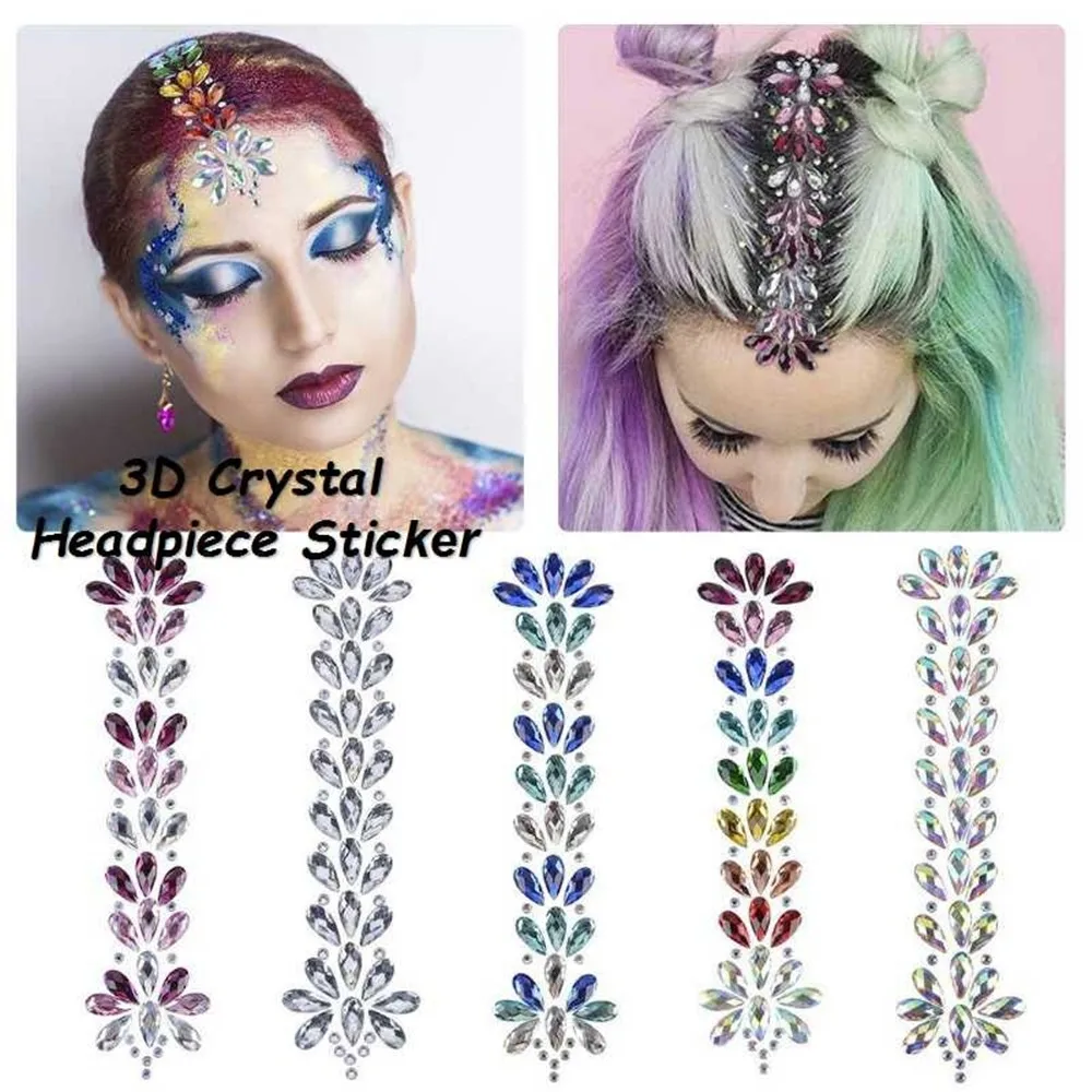 1 шт. 3D кристалл лоб головной убор стикер украшения для волос блестящее лицо тела драгоценные камни блестящие стразы фестиваль Временные татуировки стикер s