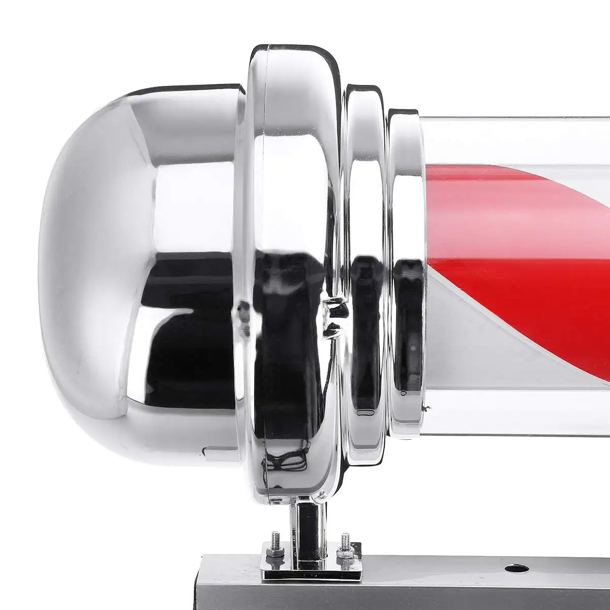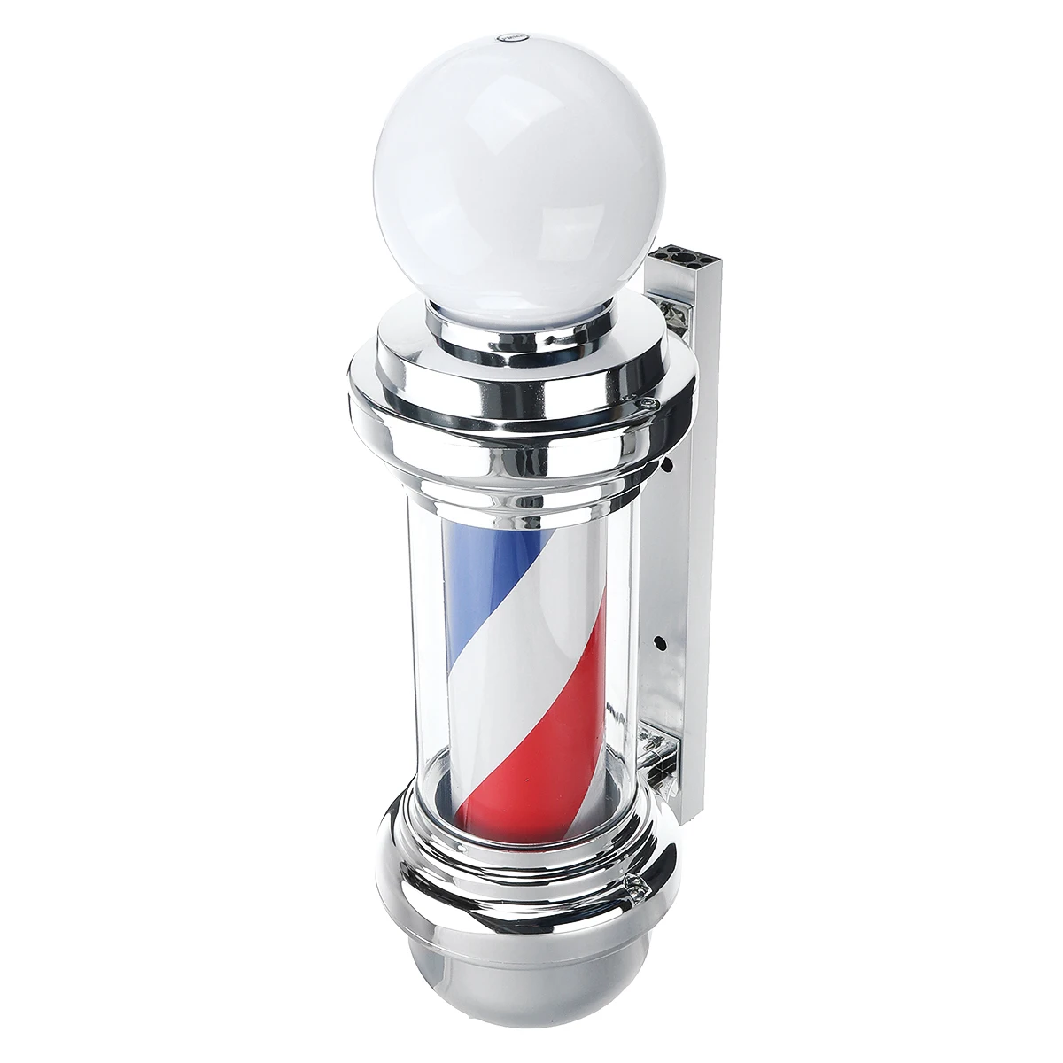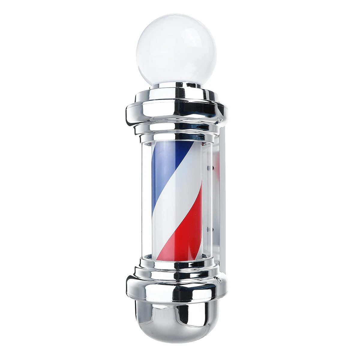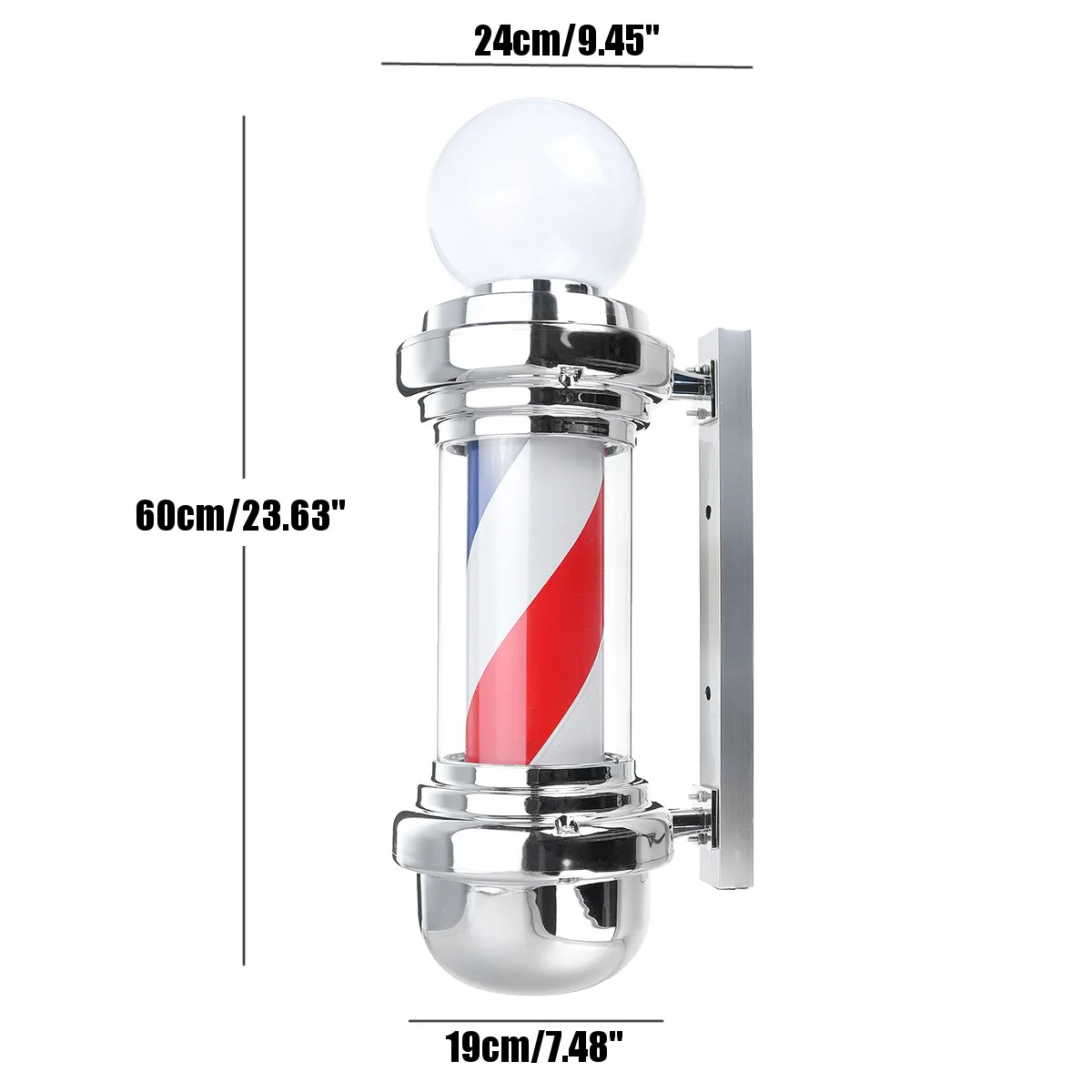 Этот классический парикмахерский столб-отличный способ привлечь внимание ваших клиентов к парикмахерской. Этот красный белый и синий барберпол придает вашему магазину классический вид с традиционным дизайном в полоску. Легкий прочный пластиковый светильник, а также вращающийся вихревой узор помогут вам поймать глаза прохожих и обратить внимание на вашу парикмахерскую. Он изготовлен из прочного покрытого пластика с покрытием стального основания для крепления на стене, готового блестеть ярко, как ваш бизнес. Полюс посылает мягкий и ярко-синий и белый светильник, довольно привлекательный.
