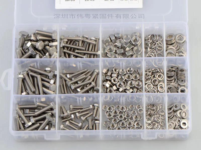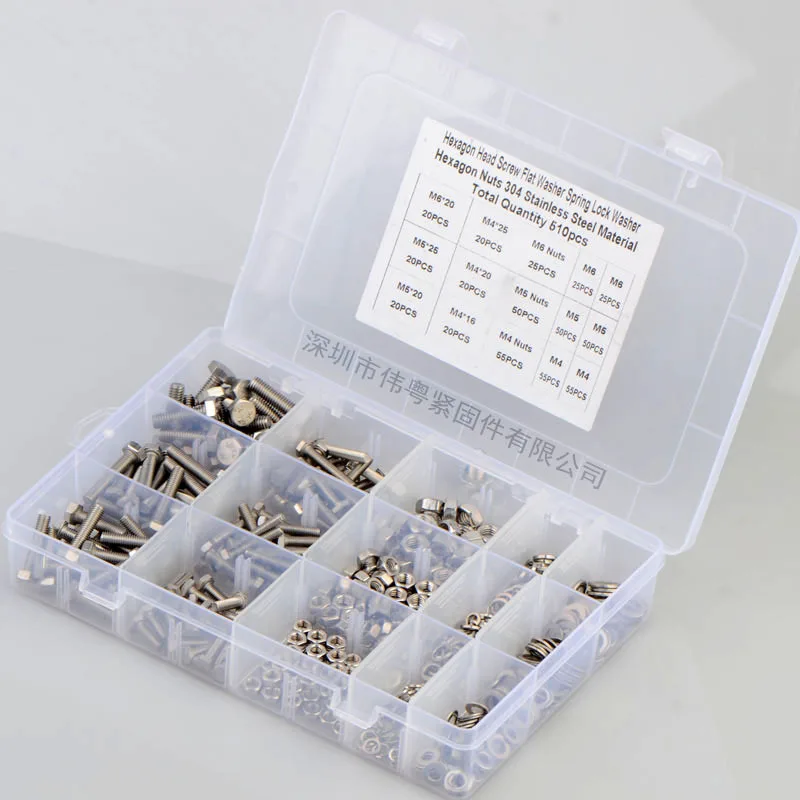 510 шт. M4 M5 M6 нержавеющая сталь 304 наружный шестигранный винт с шестигранной гайкой плоский пружинный набор A2-933 вес нетто продукта: 751,5 г