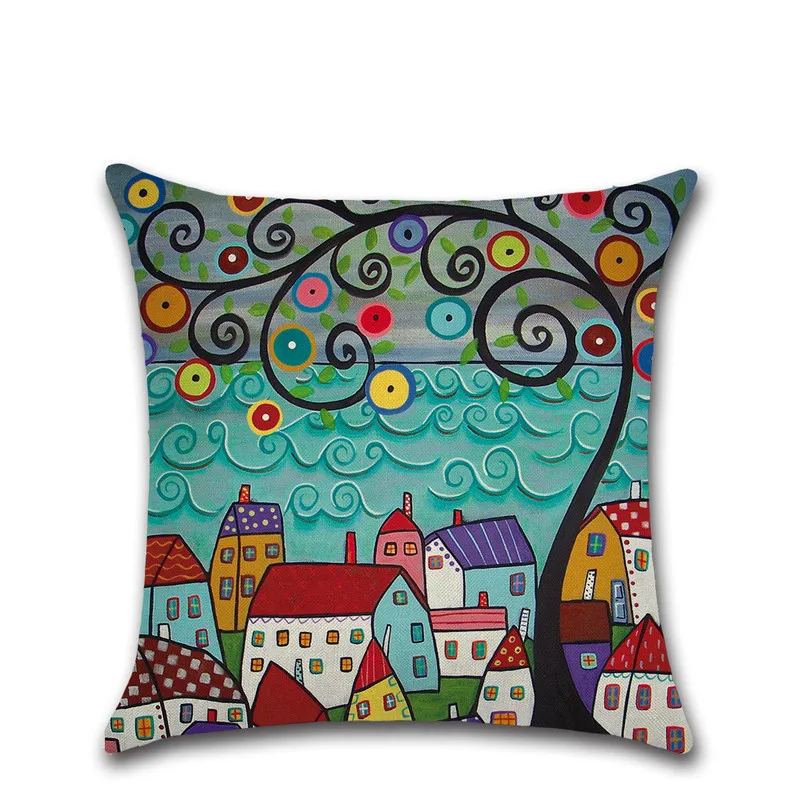 Ручная роспись наволочка Ретро Сельский цвет города квадрат 45*45 см льняная подушка для автомобиля декоративная наволочка для подушки