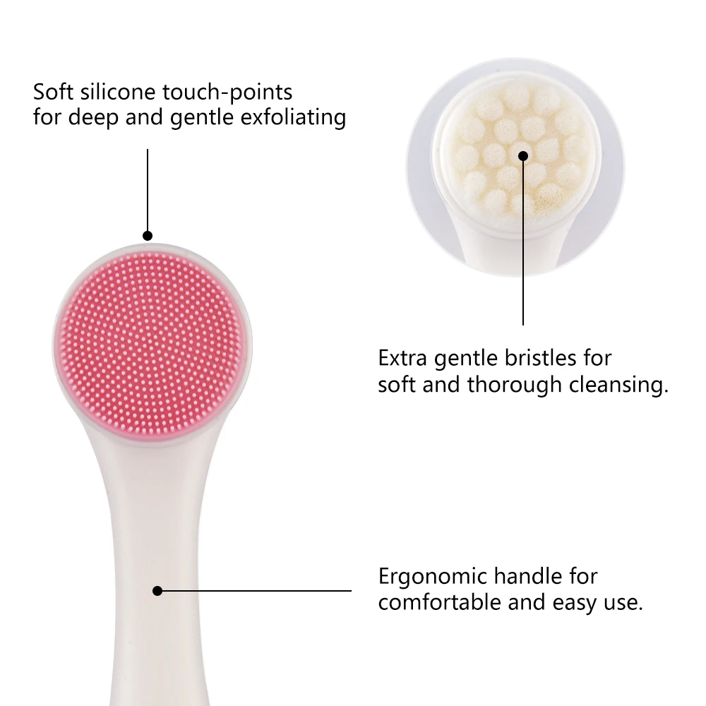 Мягкая щетина для очистки: изготовлена из мягкой, гибкой, прочной, прочной, плотно прилегающей щетинки для лица мягко отшелушивает моющее средство, чтобы оставить кожу более гладкой и упругой Силиконовая сторона для массажа: массируйте кожу перед нанесением увлажняющих средств или лечения для более глубокого проникновения. 2 в 1 щетка для очистки: прекратите осыпаться с помощью нескольких инструментов для ухода за кожей. Разработан, чтобы дополнить активный образ жизни современных мужчин и женщин и идеально подходит для ежедневного использования. Простота в использовании: дизайнерская конструкция ручки позволяет легко очищать, отшелушивать или массировать.