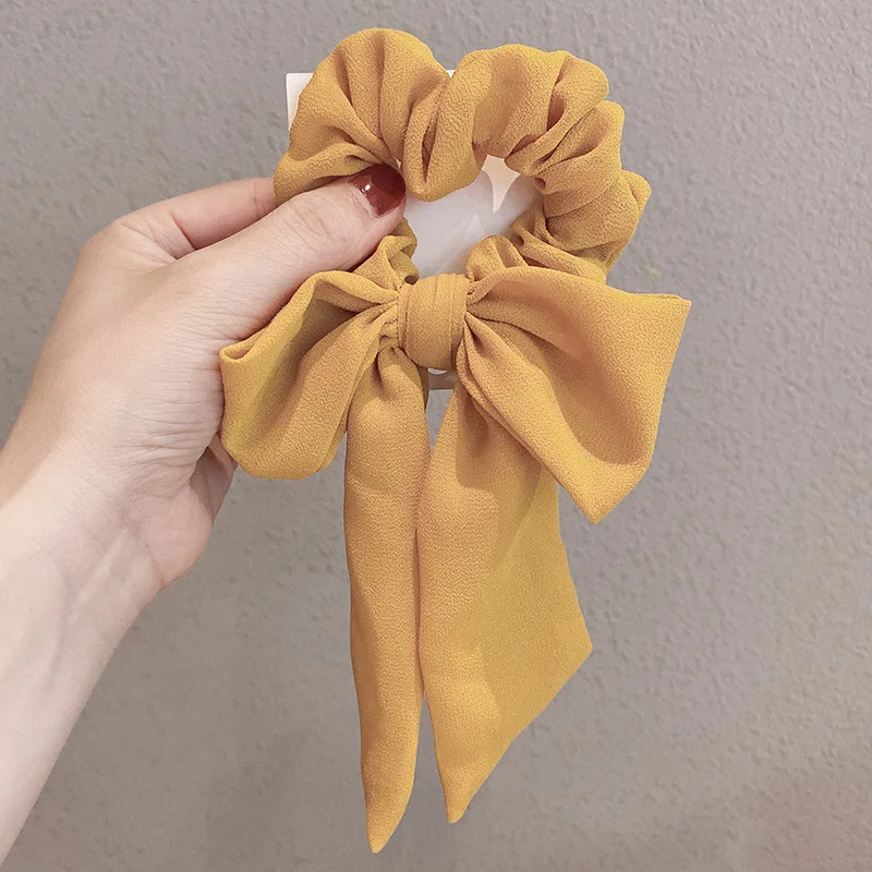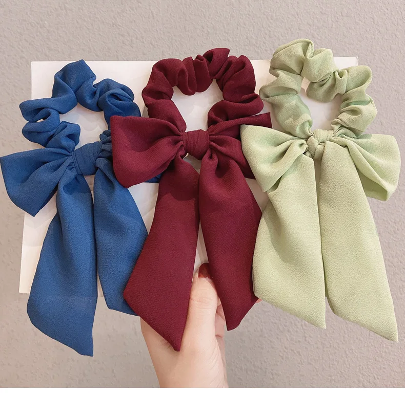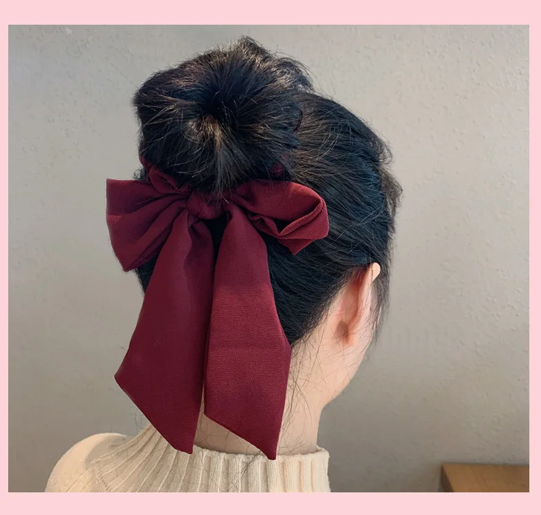 Женская эластичная лента для волос, элегантная однотонная повязка на голову с бантом, аксессуар для прически конский хвост